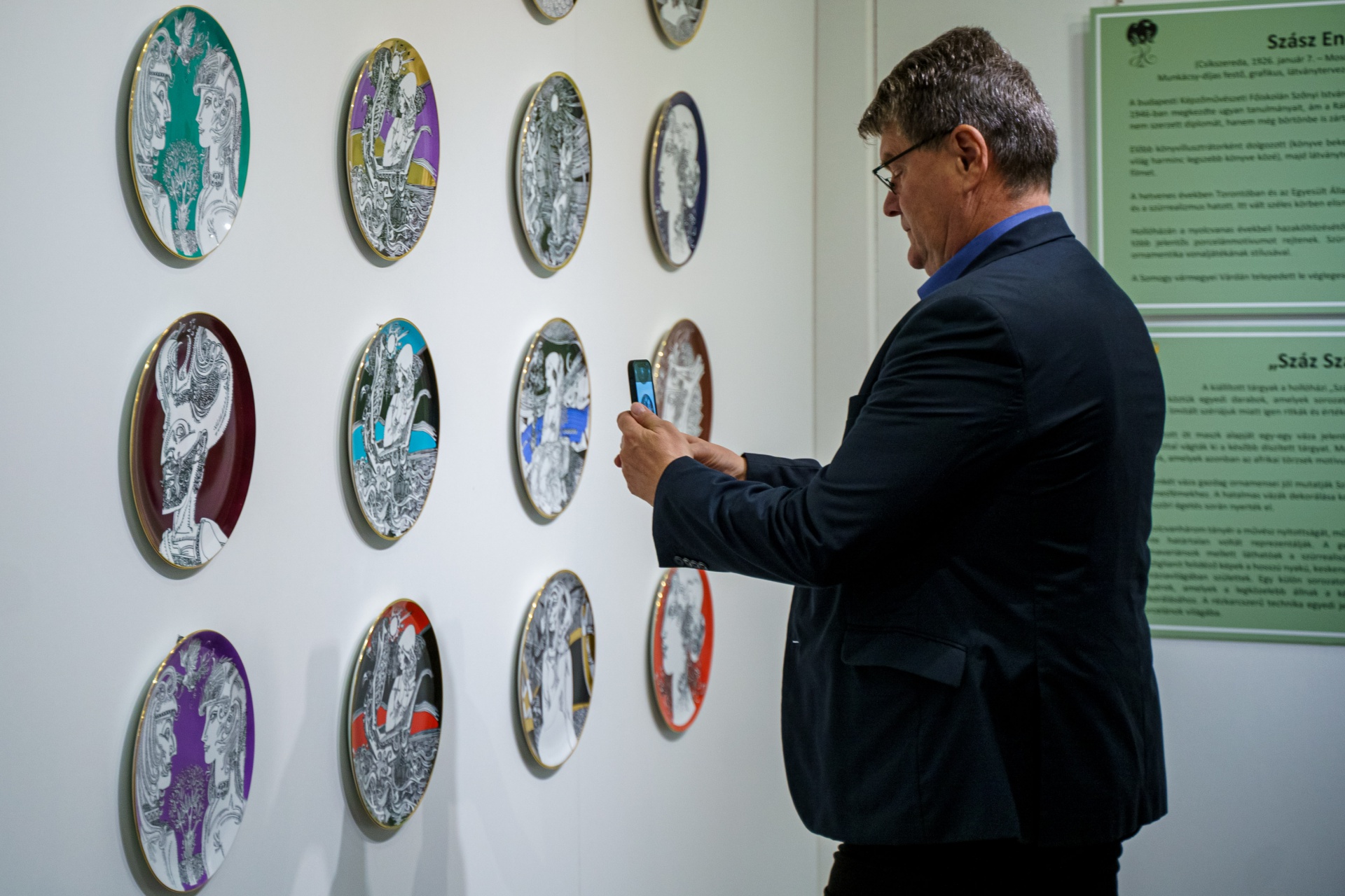 „Mindannyiunk nagy büszkesége, hogy a hollóházi manufaktúra termékei megtalálhatók a világ minden pontján, a Vatikántól kezdve, az államfők otthonáig, és olyan exkluzív emléktárgyak formájában is, mint a legjelentősebb sportesemények kupái vagy a legnevesebb művészek ajándékai. A gyárban 1978-től kezdve csaknem 10 éven át önálló Szász- stúdió működött, itt születtek meg azok a jellegzetes fekete-fehér dekorok szolid aranyozással, amelyeket a művész eredeti grafikái díszítenek” - mondta dr. Vitályos Eszter.