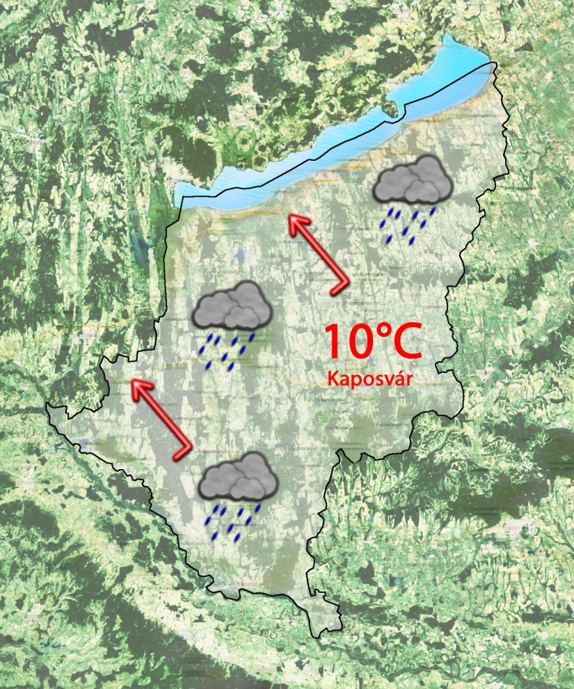 Péntek napközben egyre több helyen ered el az eső egy hidegfront hatására. 10°C-ig kúszik fel csak a hőmérő higanyszála. Gyenge lesz a délkeleti szél.