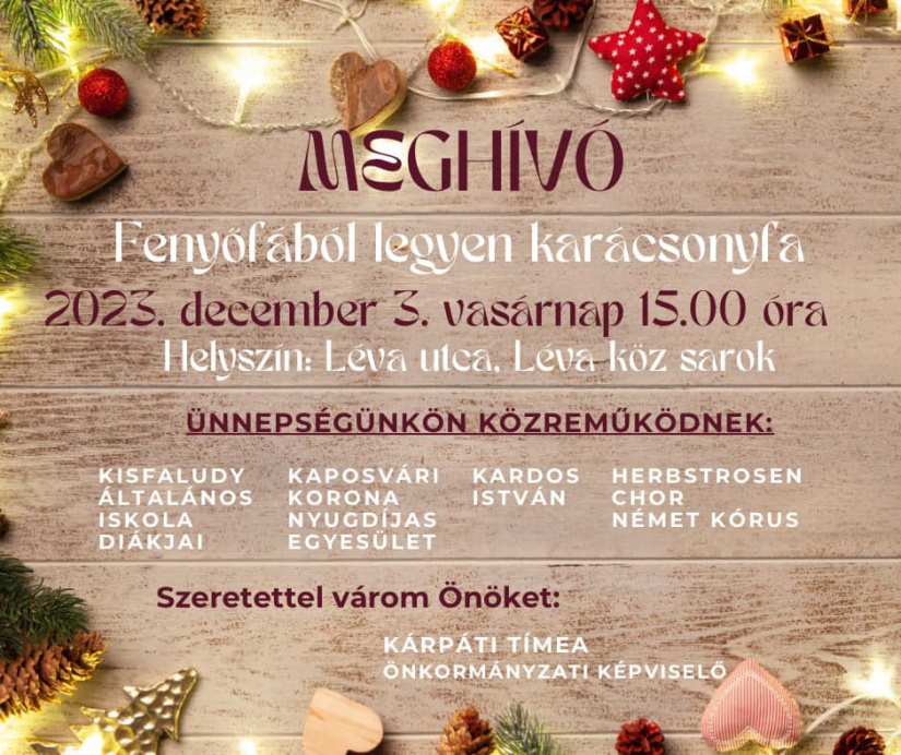 Kárpáti Tímea önkormányzati képviselő Facebook-bejegyzésben invitálta a kaposváriakat, hogy együtt köszöntsék az ünnepi várakozás időszakát.