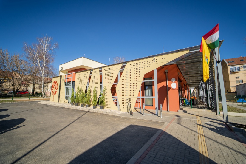 A belváros szívében megépült, egyszintes, akadálymentes vadonatúj létesítményt napelemekkel is felszerelték, benne három csoportszobát alakítottak ki, a hozzájuk tartozó szociális helyiségekkel, bútorzattal, a kisgyermekek gondozásához szükséges használati tárgyakkal, eszközökkel és játékokkal. A belvárosi viszonylatban különösen tágas terület új kerítést kapott, udvarát parkosították, játszóudvart, babakocsi tárolót, akadálymentes parkoló helyeket, kerékpártámaszokat és kerékpártárolókat is kialakítottak.