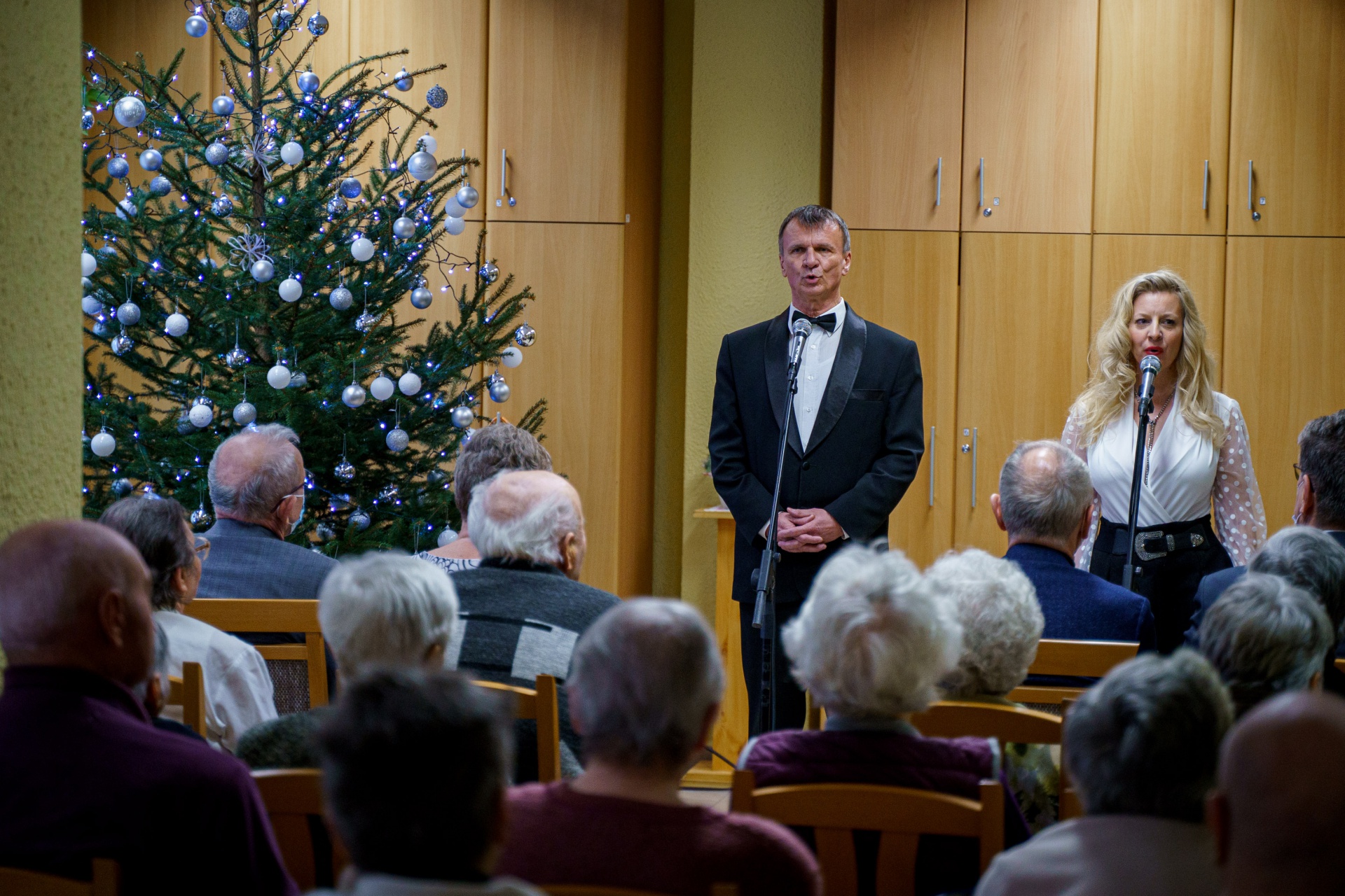 A polgármester köszöntőbeszédében elmondta, hogy idestova 30 éve van lehetősége advent időszakában ellátogatni az intézetbe. Köszönetét fejezte ki a meghívásért, a társulat előadásáért, egyben ráirányította a figyelmet a nyugdíjasház dolgozóira is.