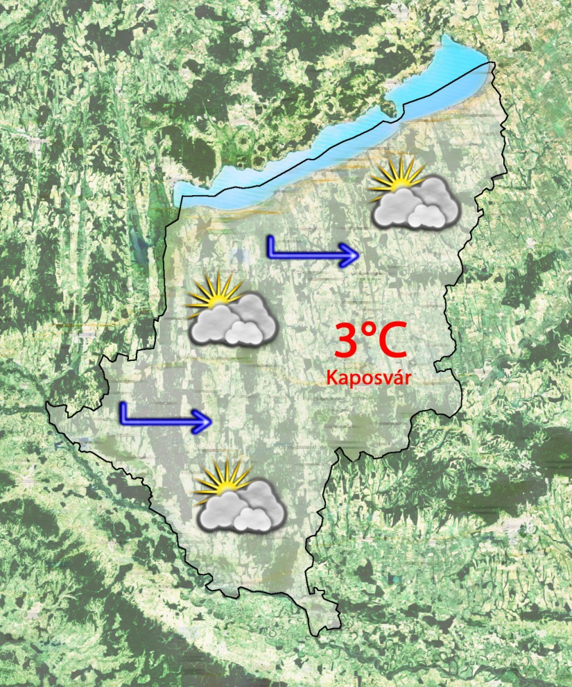 Péntek napközben erősen felhős lesz az ég majd délután csökkenésnek indul a hőmérséklet. 3°C-ig kúszik fel a hőmérő higanyszála. Gyenge lesz az északnyugati szél.