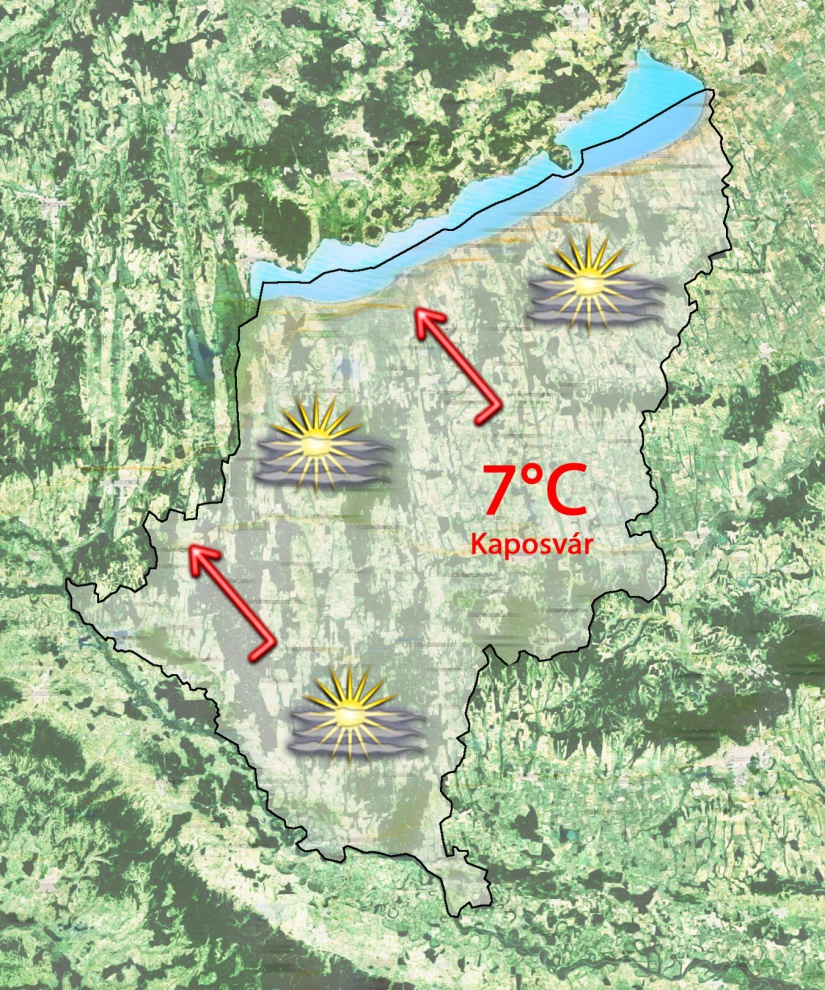 Kedd reggel -3°C-ig csökken a hőmérséklet a derült ég alatt. Többfelé képződhet köd, mely napközben feloszlik majd, ám lehetnek olyan helyek, ahol tartósan megmaradhat a ködpaplan. Napközben gyengén felhős lesz az ég a többi területen, és délután 7°C-ig kúszik fel a hőmérő higanyszála. Gyenge lesz a délkeleti szél.