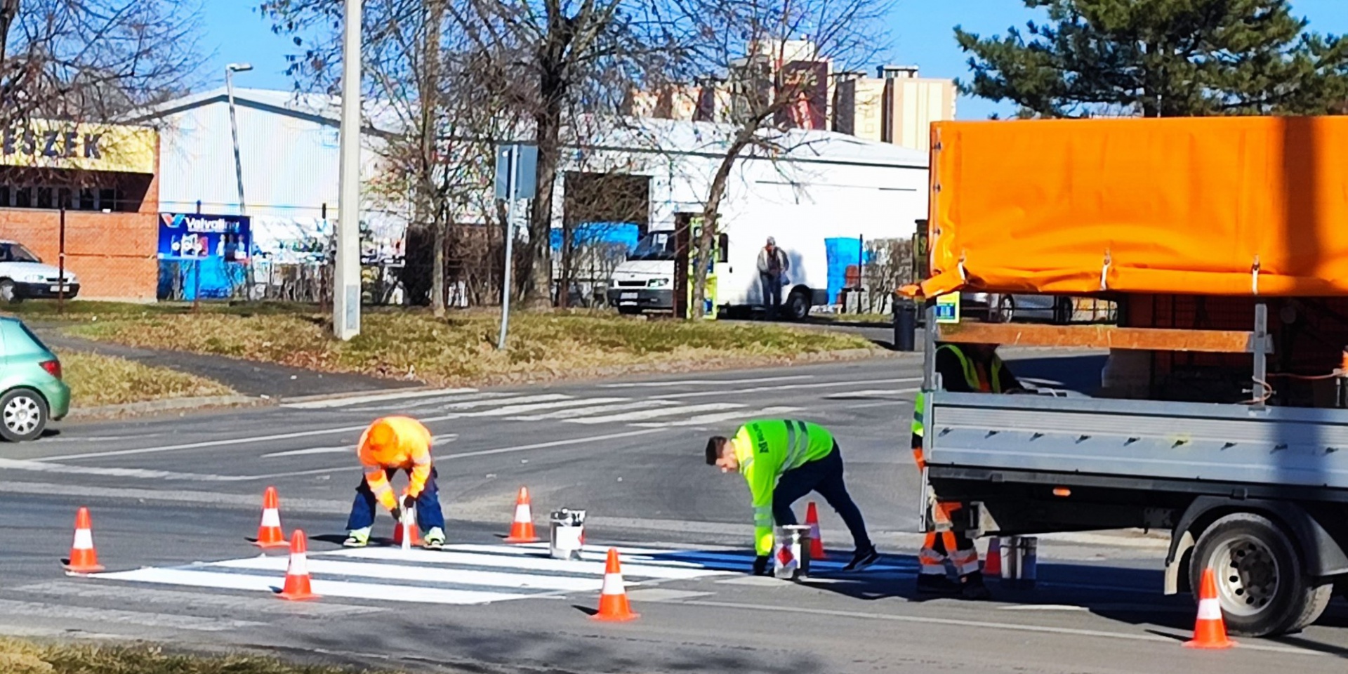 Szita Károly polgármester Facebook-bejegyzésében tudatta, hogy a tavaszias időjárásnak köszönhetően ismét belekezdenek az útburkolati jelek újrafestésének.