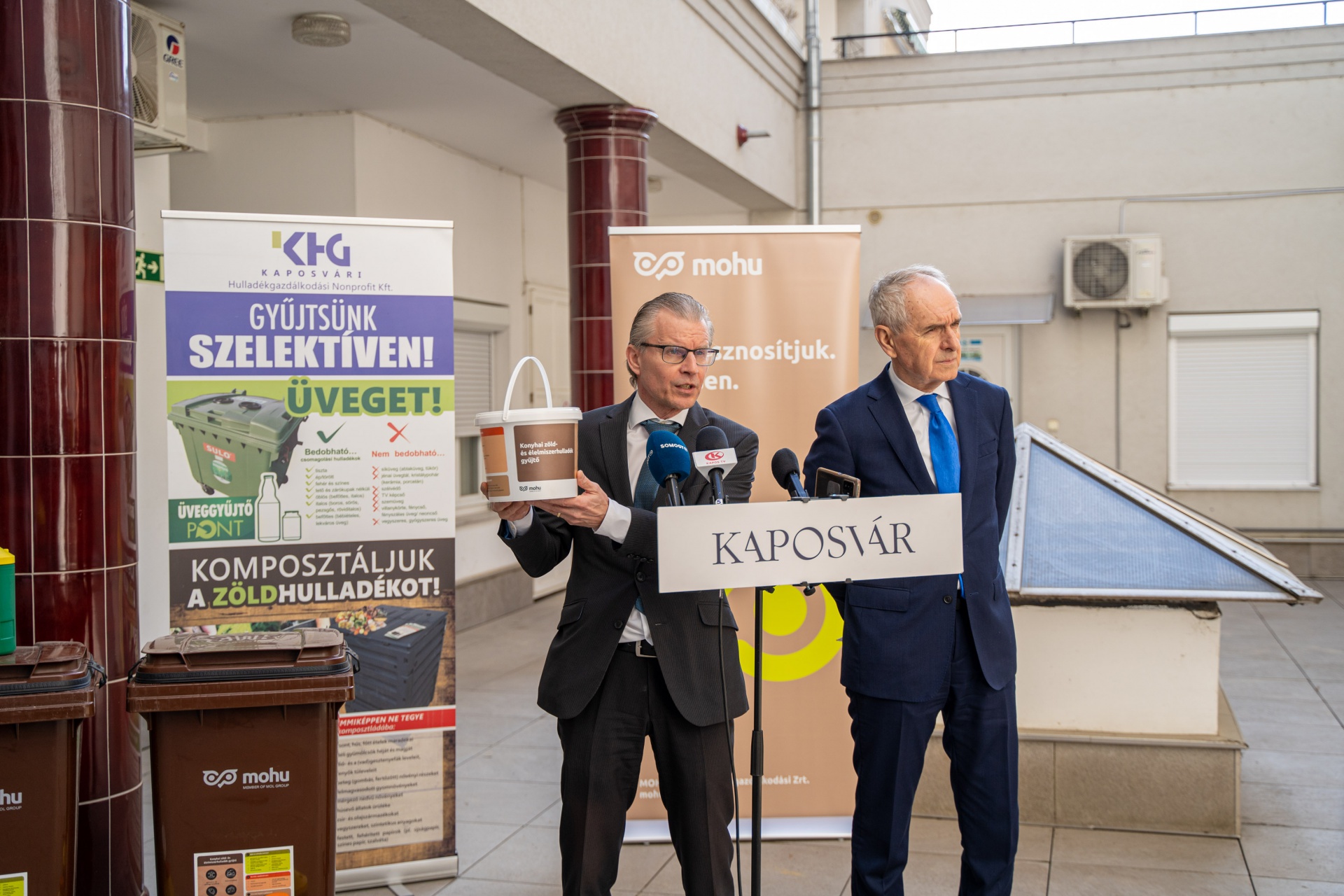 A városvezető kiemelte, hogy Kaposvár már évek óta foglalkozik a szelektív hulladékgyűjtéssel, nemrég pedig a használt sütőolaj-gyűjtést is bevezették a városban, ennek köszönhetően pedig havonta 1000 kg háztartási sütőolajat gyűjtenek össze Kaposváron. „Most még egyet lépünk előre, össze fogjuk gyűjteni a háztartási ételmaradékokat is” – tette hozzá.