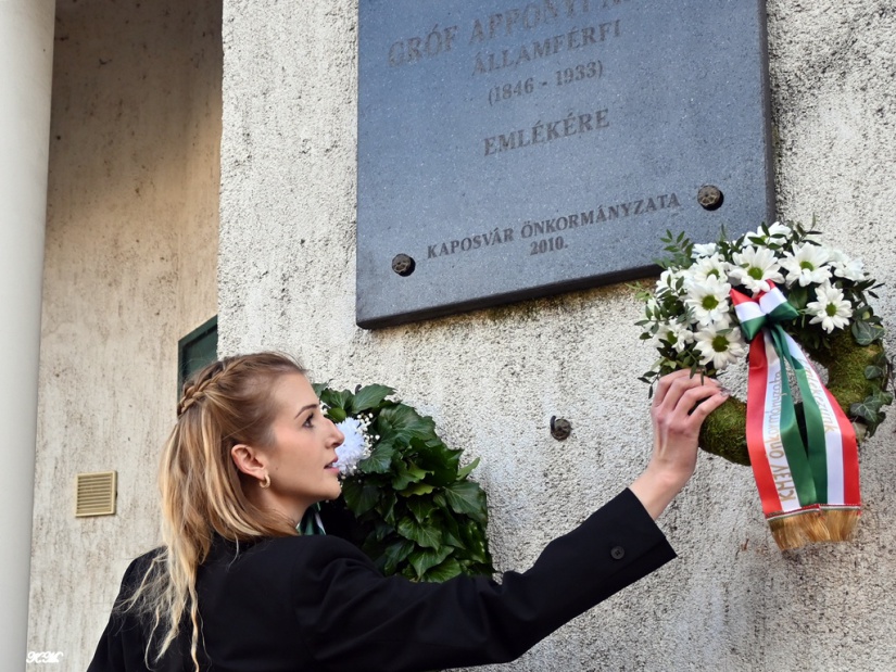 Gróf Apponyi Albert halálának 91. évfordulóján koszorút helyeztek el emléktáblájánál szerdán.
