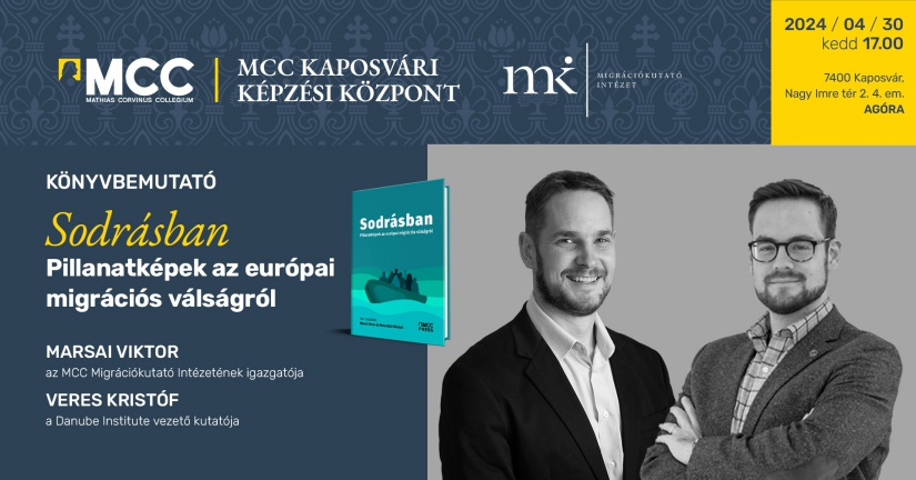 A Mathias Corvinus Collegium a Migrációkutató Intézettel együttműködve „Sodrásban - Pillanatképek az európai migrációs válságról” címmel tart könyvbemutatót az MCC kaposvári képzési központjában április 30-án, 17 órakor.
