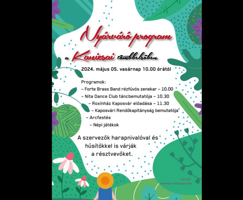 Az érdeklődőket május 5-én, vasárnap délelőtt a Kanizsai tömbbelsőben, a Hagymácska szökőkút körül várják – invitál közösségi oldalán Pintér Rómeó.