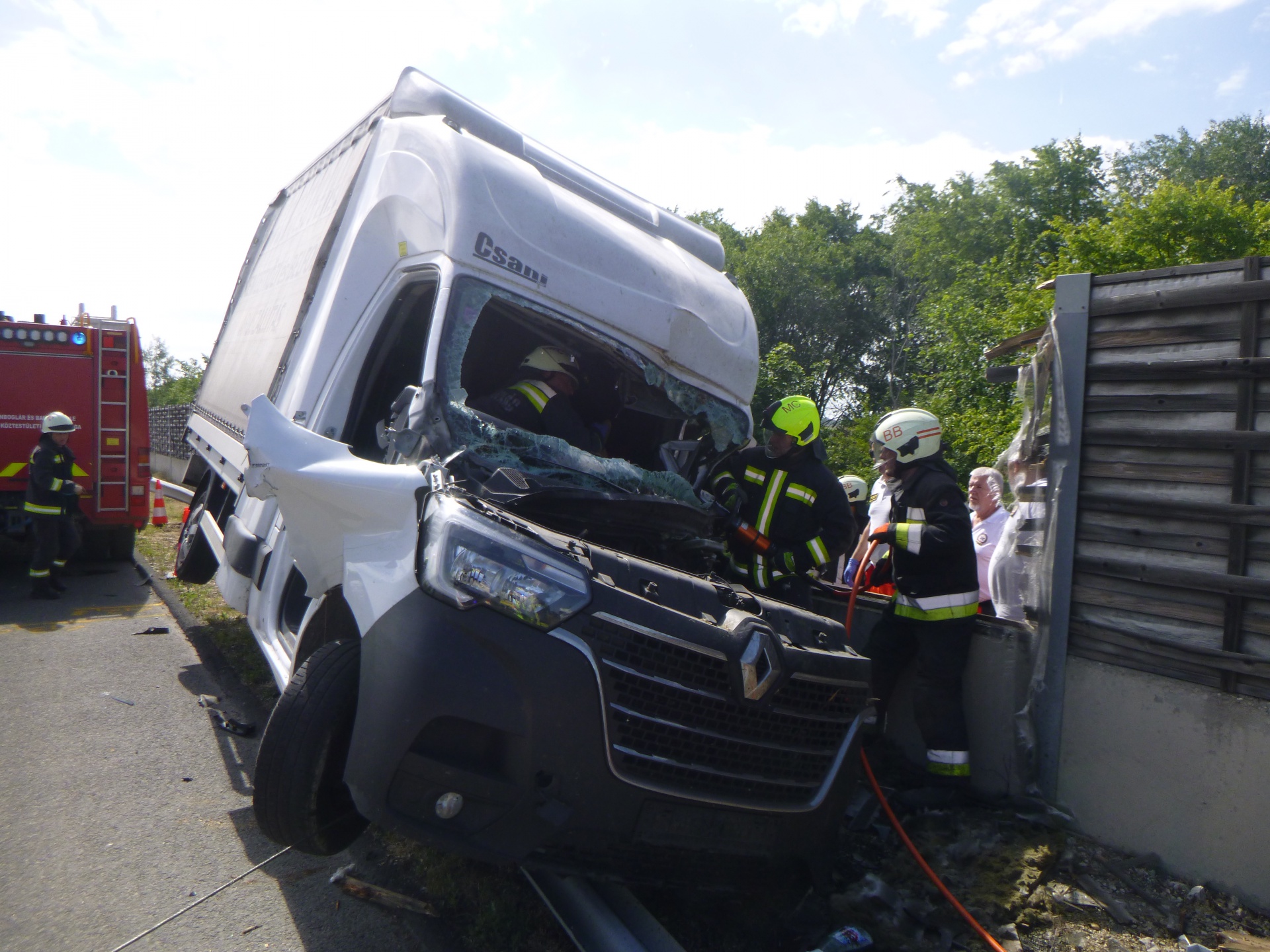 A zajvédő falnak ütközött, majd a fal és a szalagkorlát közé ékelődött egy kisteherautó csütörtök délután az M7-es autópályán, Ordacsehi térségében, a Budapest felé vezető oldalon.