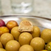 – A kötelezően előírt gyümölcs idén a birs volt. Karamellás burokban egy birspálinkás ganázskrémet készítettünk, valamint egy karamellába forgatott sós tökmag is került a bonbonba. A Gábor Pálinkaház által készített pálinka alapanyaga Siófok környékéről származik, ezért az Aranyparti Birsparti fantázianevet kapta az édesség – mesélte Kutasné Harsányi Tünde a csapat felkészítő oktatója.