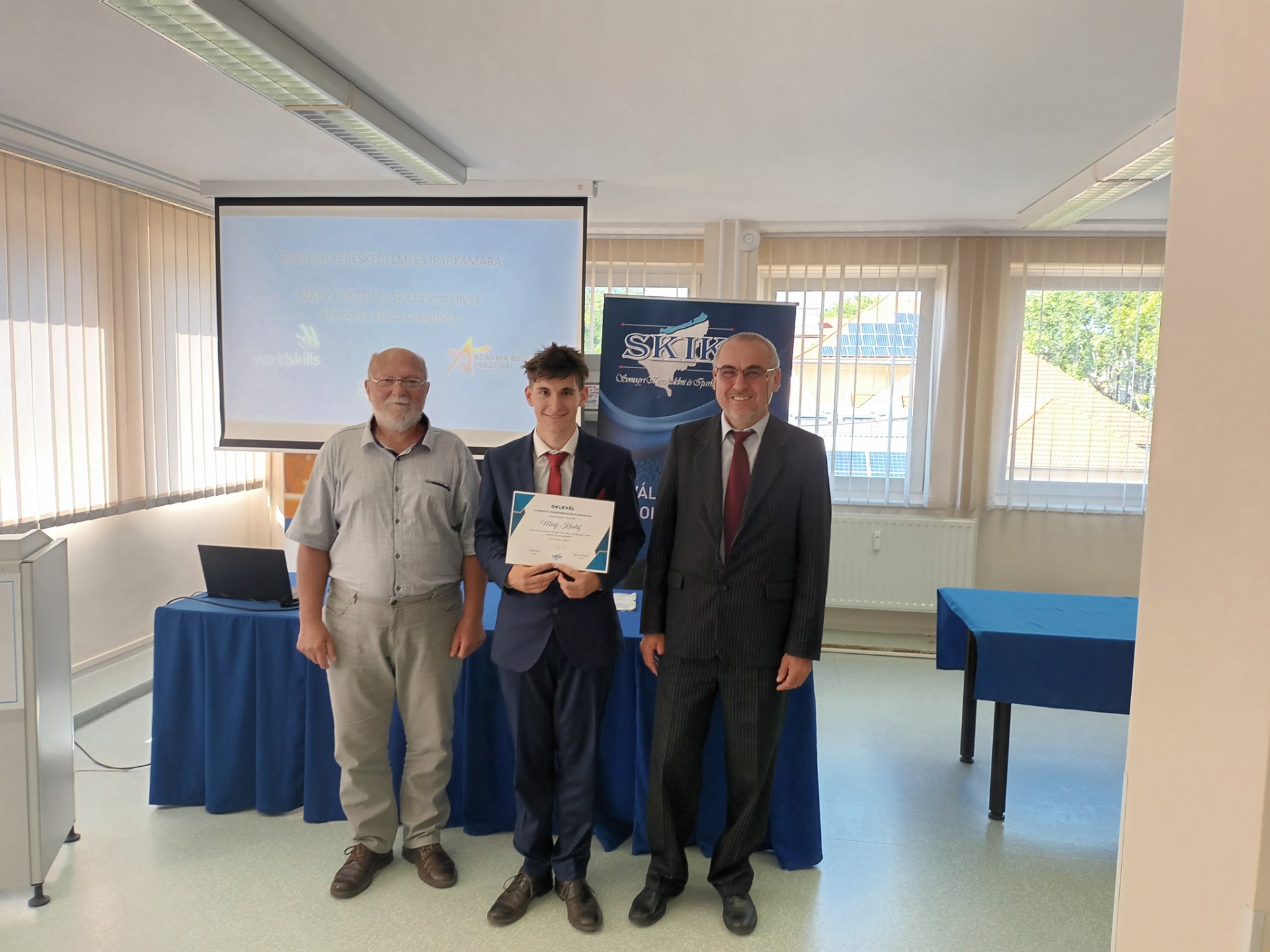 A Szakma Kiváló Tanulója Verseny országos döntőjében 2. helyezést elért Márfi Kristóf és a 3. helyezett Filipovics Péter a Somogyi Kereskedelmi és Iparkamara elismerő oklevelét vehette át a szervezet alelnökétől és titkárától.