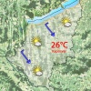 Csütörtök reggel 12°C-ig csökken a hőmérséklet a közepesen felhős ég alatt. Napközben megnövekszik a felhőzet és már kipattanhatnak záporok-zivatarok. 26°C-ig melegszik a levegő a gyenge nyugati szél mellett. Zivatarok környezetében azonban lehetne viharos széllökések.