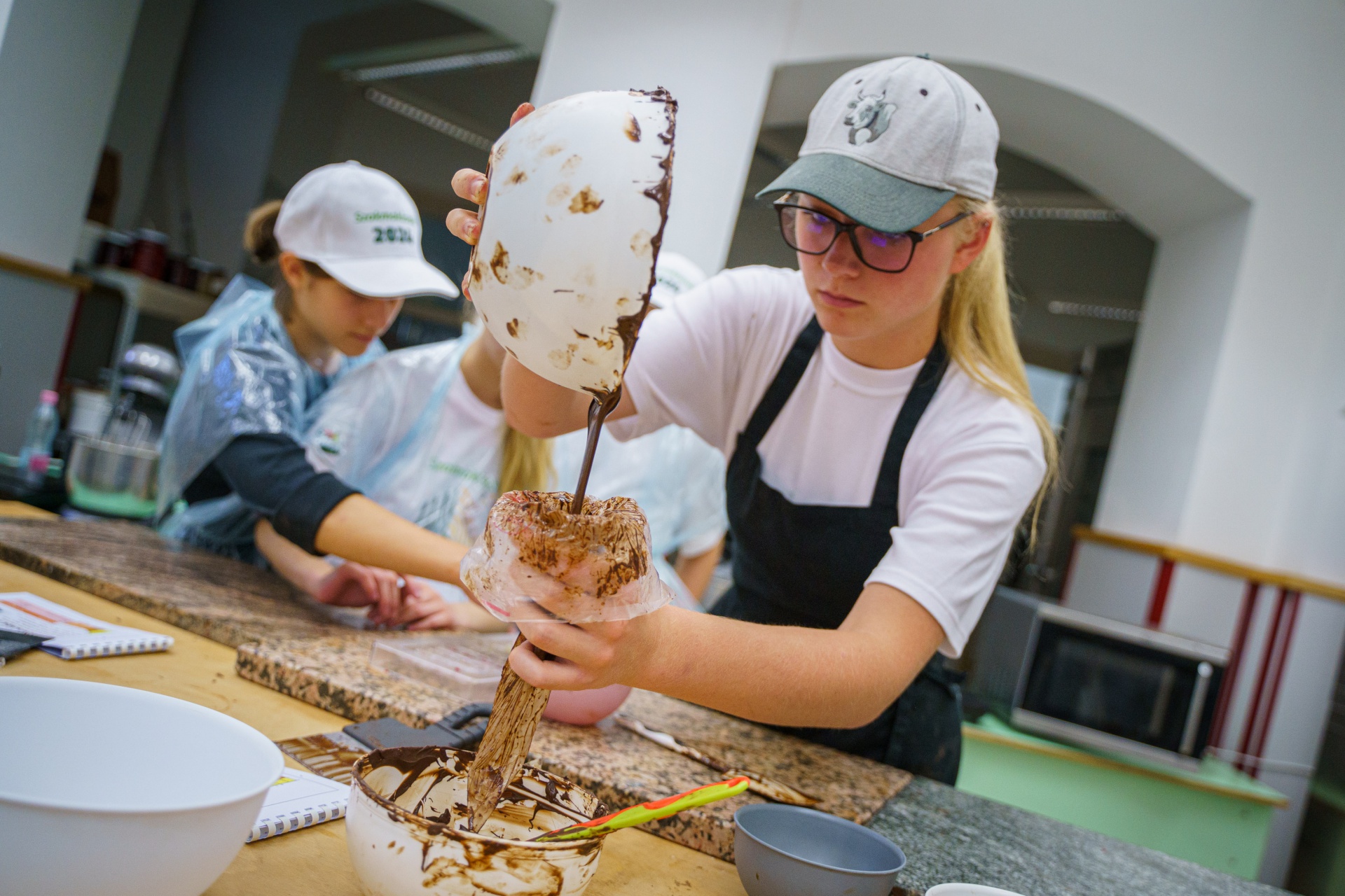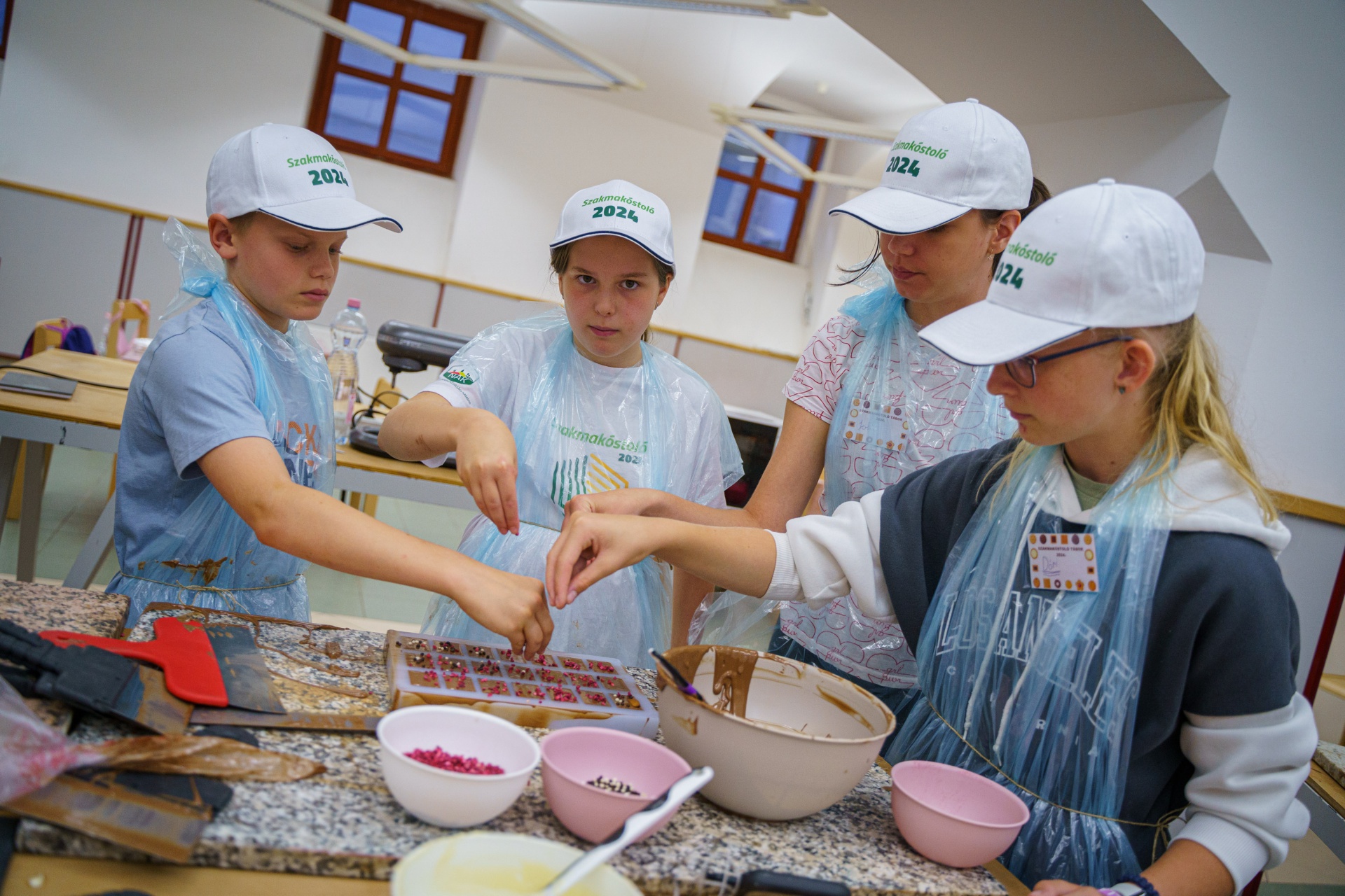– Az első nap a csapatépítésről szólt, emellett pillecukorkát, gumicukrot és karamellát készítettek a gyermekek. Meglátogattuk Pécsen a Heaven's Chocolate csokoládéműhelyt és a Nosztalgia cukorkamanufaktúrát is. Nagyon ügyesek voltak a tanulók, lelkesen és fegyelmezetten dolgoztak. Készültek teasütemények, csokoládényalókák, pasztillák és táblás csokoládék. Sőt a diákok lúdlábtortát és muffint is sütöttek, amivel szüleiket vendégelték meg – foglalta össze a tábornak történteket Kutasné Harsányi Tünde, a Déli ASzC Kinizsi Pál Élelmiszeripari Technikum és Szakképző Iskola oktatója.