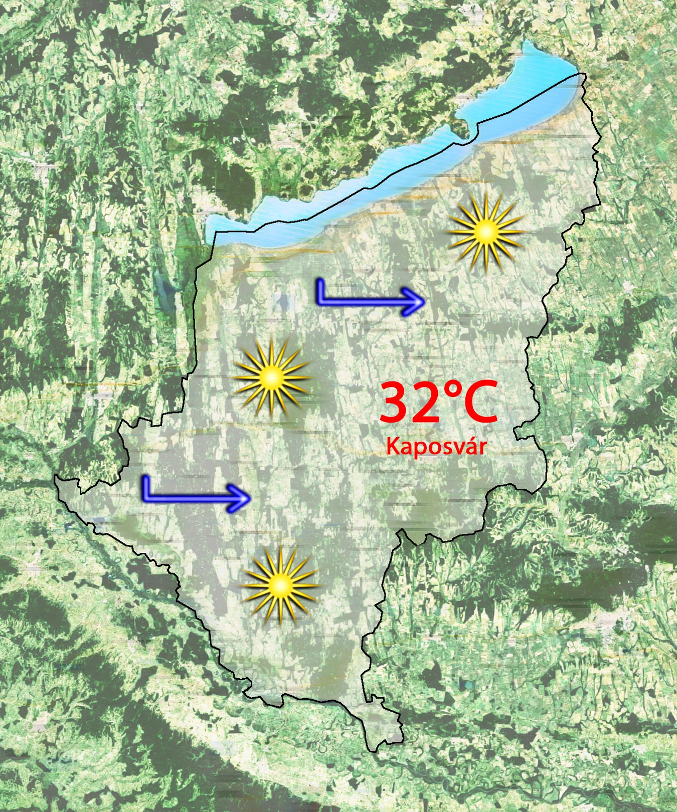 Szerdán napközben szikrázó napsütés várható. Délután 32°C-ig melegszik a levegő a gyenge nyugati szél mellett.