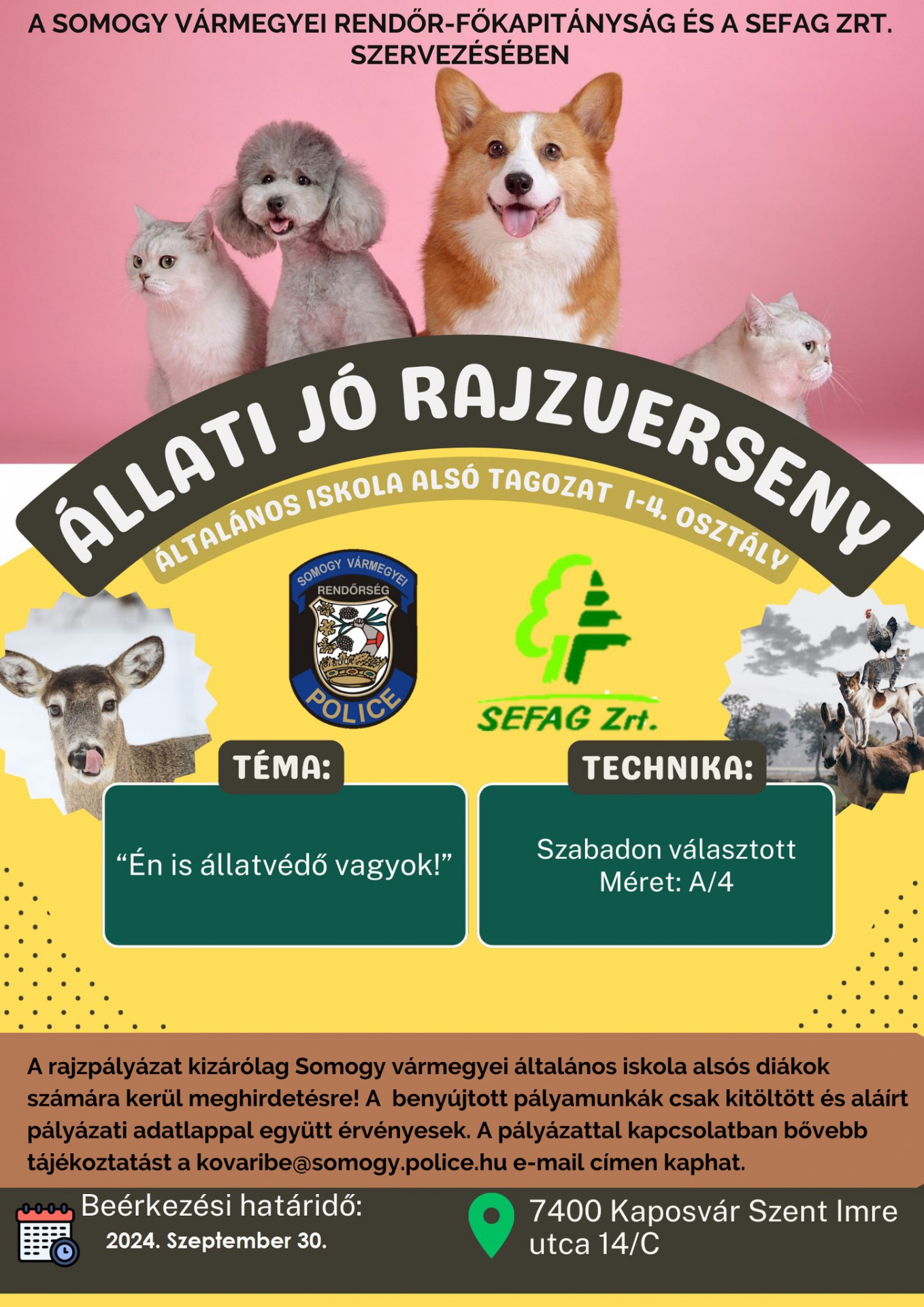 Közös rajzpályázatot hirdetett a Somogy Vármegyei Rendőr-főkapitányság és a SEFAG Zrt. "Állati jó rajzverseny" címmel. A pályázat témája: "Én is állatvédő vagyok", melyre várják Somogy vármegyei általános iskolák 1-4. osztályos tanulóinak kreatív alkotásait.