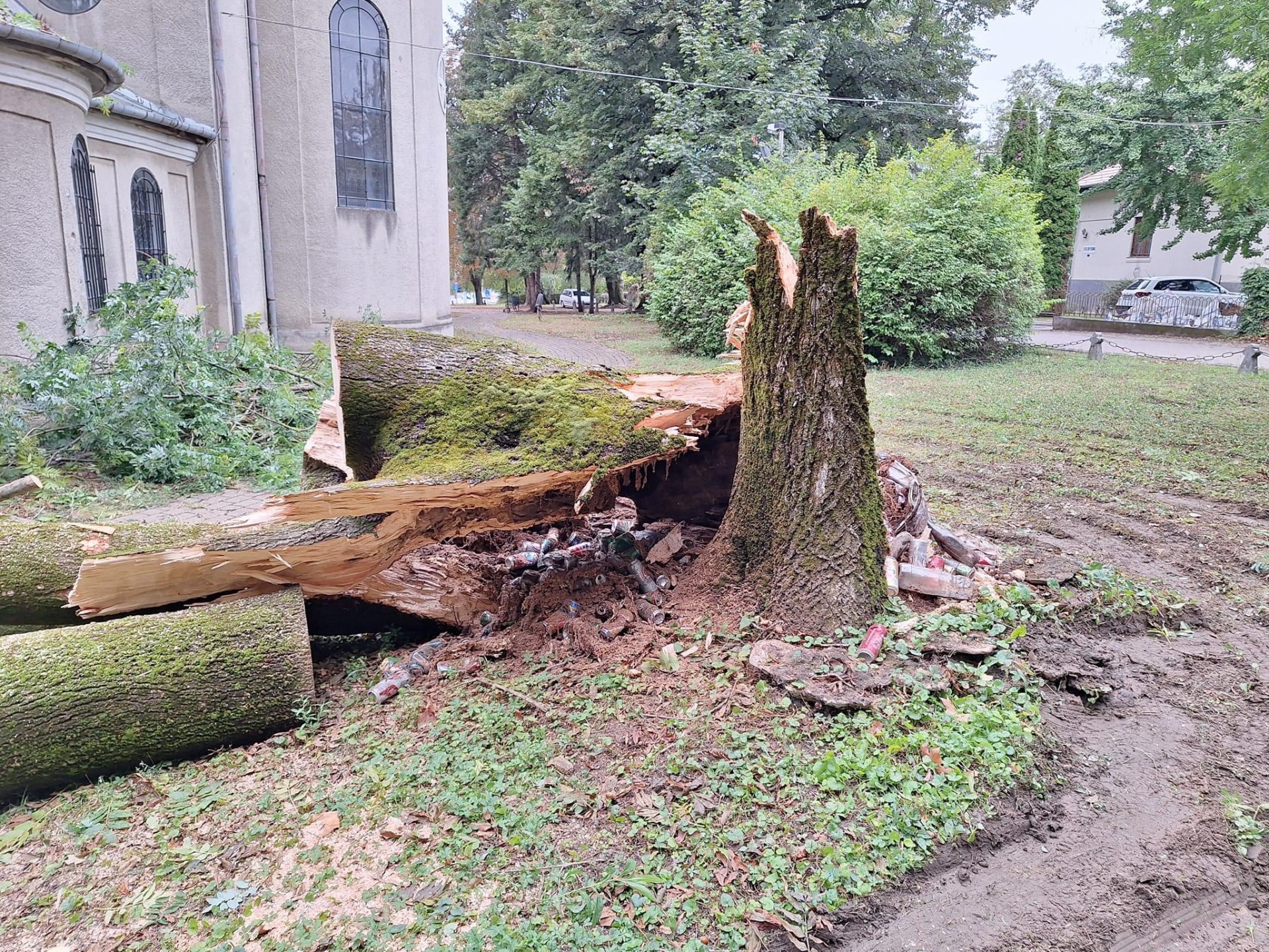 A viharos szél következtében a szél a Hősök templomára döntött egy korhadt törzsű 24 méteres fát – tudatta a KÖTÉL Speciális Mentőszolgálat a Facebook-oldalán.