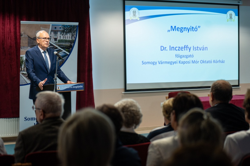 – A Kaposi Mór Oktató Kórház időről időre tudományos fórumokat szervez, melyen a kórház történetét tevékenyen formáló kiváló személyiséggel bíró nemes elődök előtt tiszteleg – kezdte beszédét Dr. Inczeffy István, a Kaposi Mór Oktató Kórház főigazgatója.