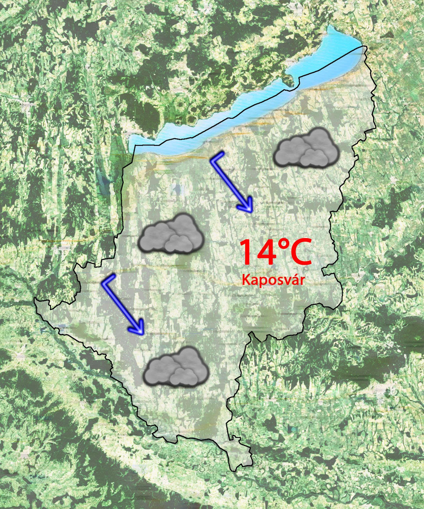 Szombat reggelre 10°C-ig csökken a hőmérséklet a sok felhő miatt. A ciklon hátoldalára kerülve még lehet záporeső. 15°C-ig kúszik fel a hőmérő higanyszála. Mérsékelt lesz az északnyugati szél.