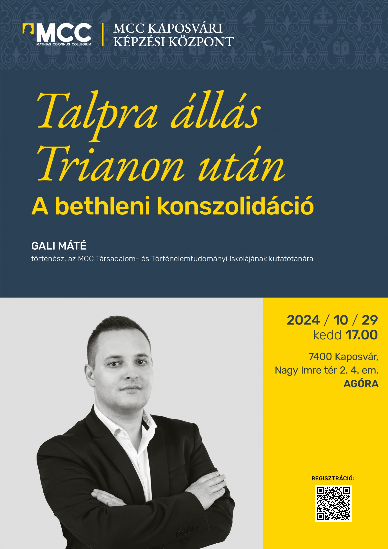 A Mathias Corvinus Collegium kaposvári képzési központja előadást tart jövő hét kedden "Talpra állás Trianon után. A bethleni konszolidáció" címmel. Az érdeklődők