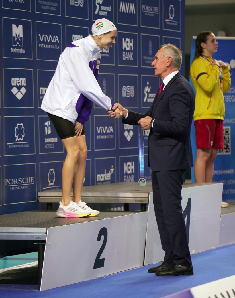 — Nagyon megható volt és csodálatos érzés, hogy ennyien ünnepeltek. Persze tudtam, hogy ez lesz az utolsó úszásom egy országos bajnokságon, mégis, kicsit meglepett ez a köszöntés, nagyon sokat jelentett, hogy ilyen hangulatot teremtettek a szurkolók és a versenyzőtársak a lelátón - nyilatkozta Bogi az éremátadás után.