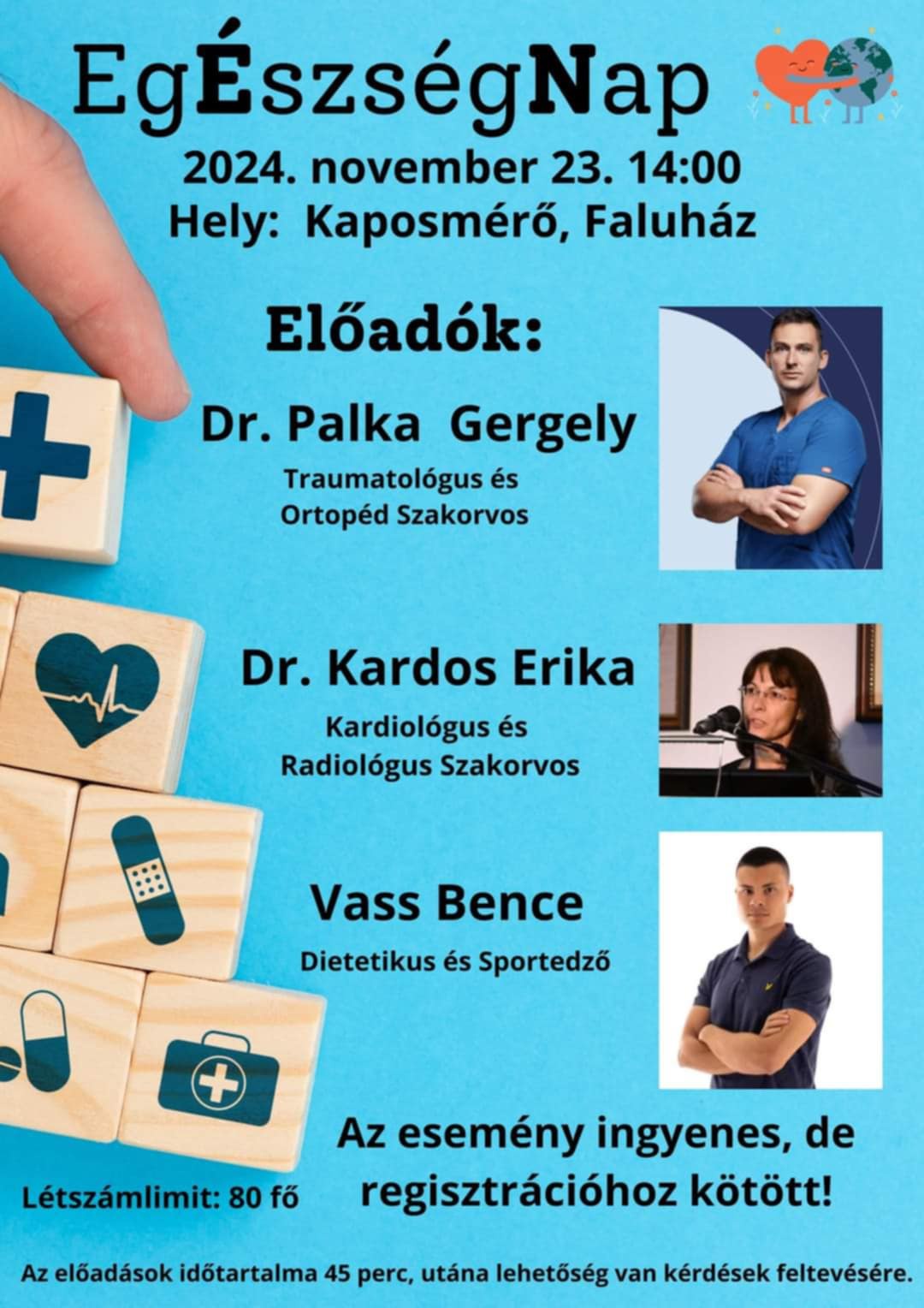 Különleges egészségnapot szerveznek november 23-án Kaposmérőben, amely során elismert szakemberek segítenek jobban megérteni és megőrizni egészségünket.