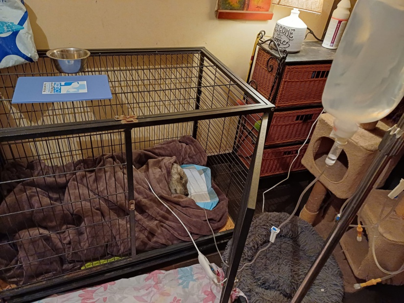 Petyát teljesen kihűlt állapotban, mérhetetlen testhővel kellett kimenteni "gazdáitól", így érkezése óta folyamatosan melegítőmatracon fekszik.
