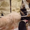 Eleinte minden etetésnél cserélni kellett alatta a takarókat, mert maga alá pisilt, mostanra azonban már az evéshez kiveszik egy törölközőre, segítséggel kicsit áll, majd leül vagy leroskad és fekszik.
