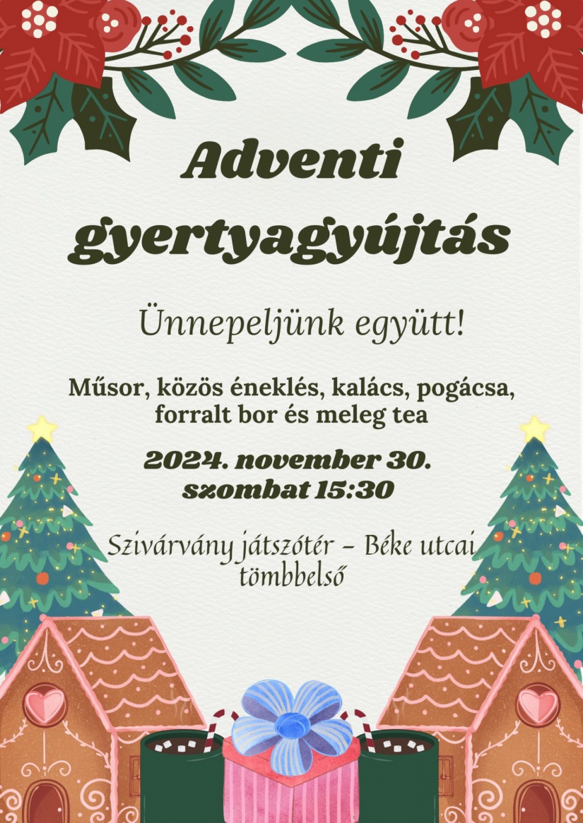Szombaton, vagyis november 30-án az elmúlt évekhez hasonlóan idén is közös adventi gyertyagyújtásra invitálják a környéken élőket.