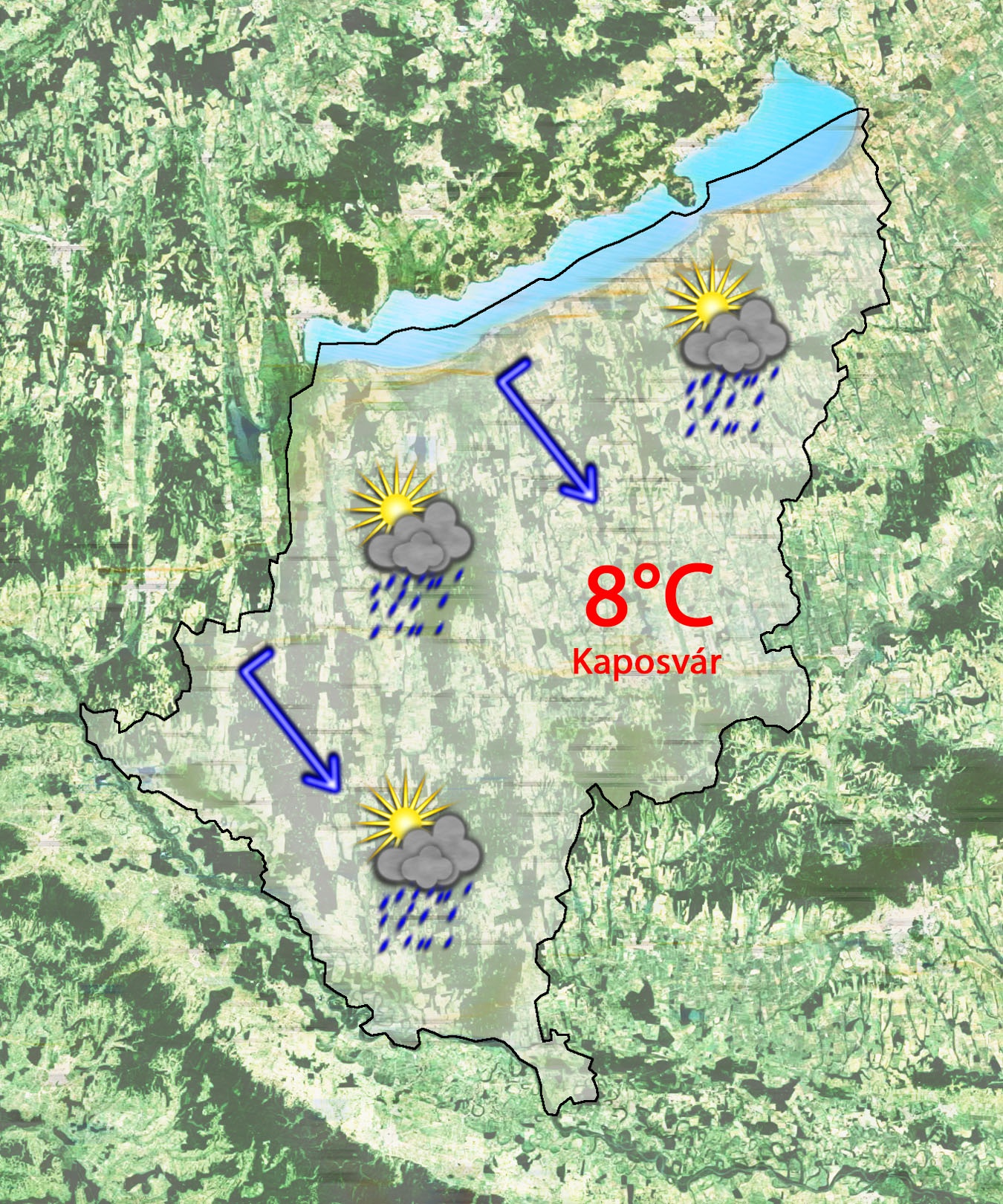 Péntek napközben erősen felhős lesz az ég és többfelé lehet záporeső egy hidegfrontnak köszönhetően. Délután 8°C várható. Megélénkülhet az északnyugati szél.