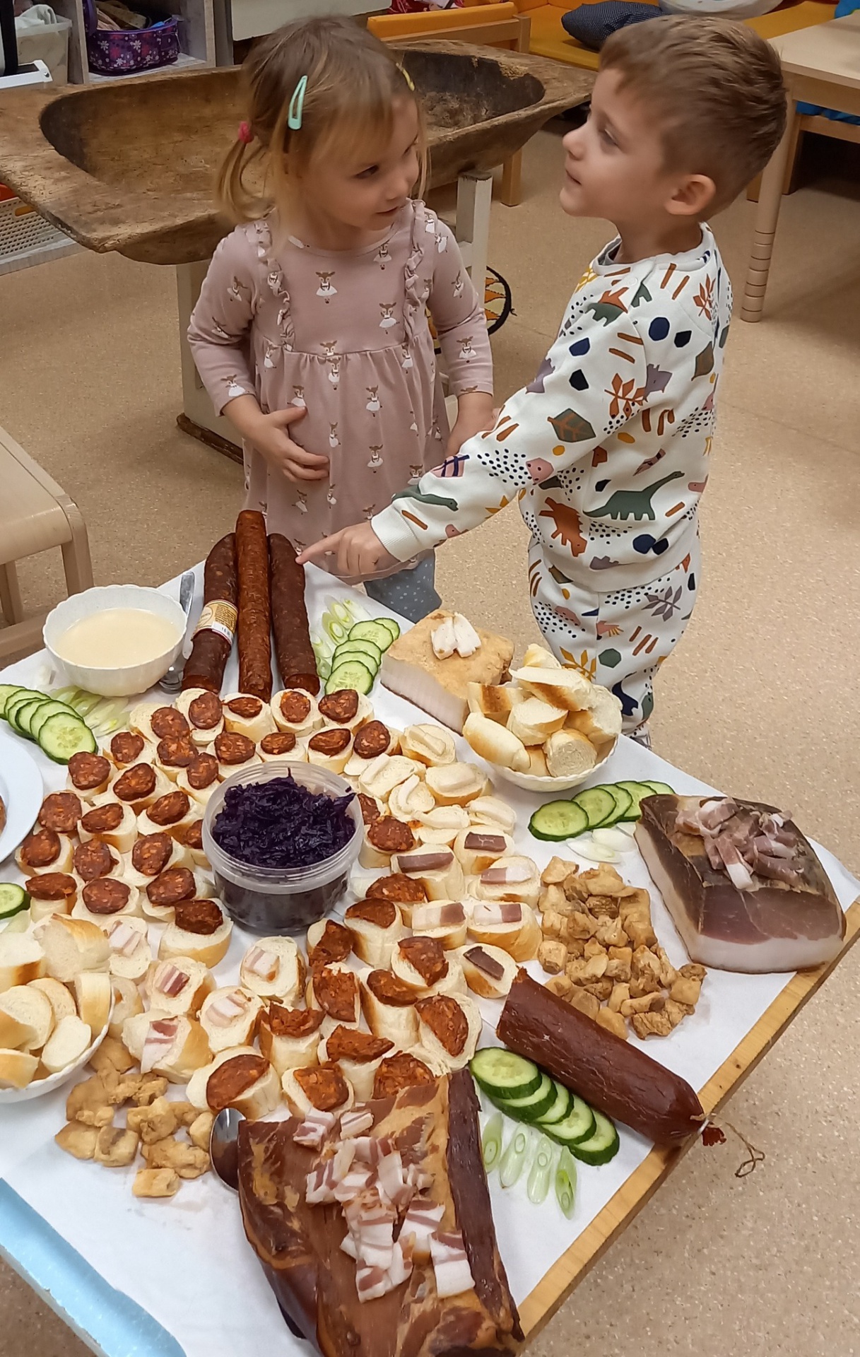Az óvodapedagógusok a tematikus hét folyamán megismertették a kicsikkel a disznóvágás gasztronómiájának széles ízvilágát. A részben játékos bemutatót aztán kóstolás követett, a gyerekek jóízűen falatoztak a gazdag kínálatból.