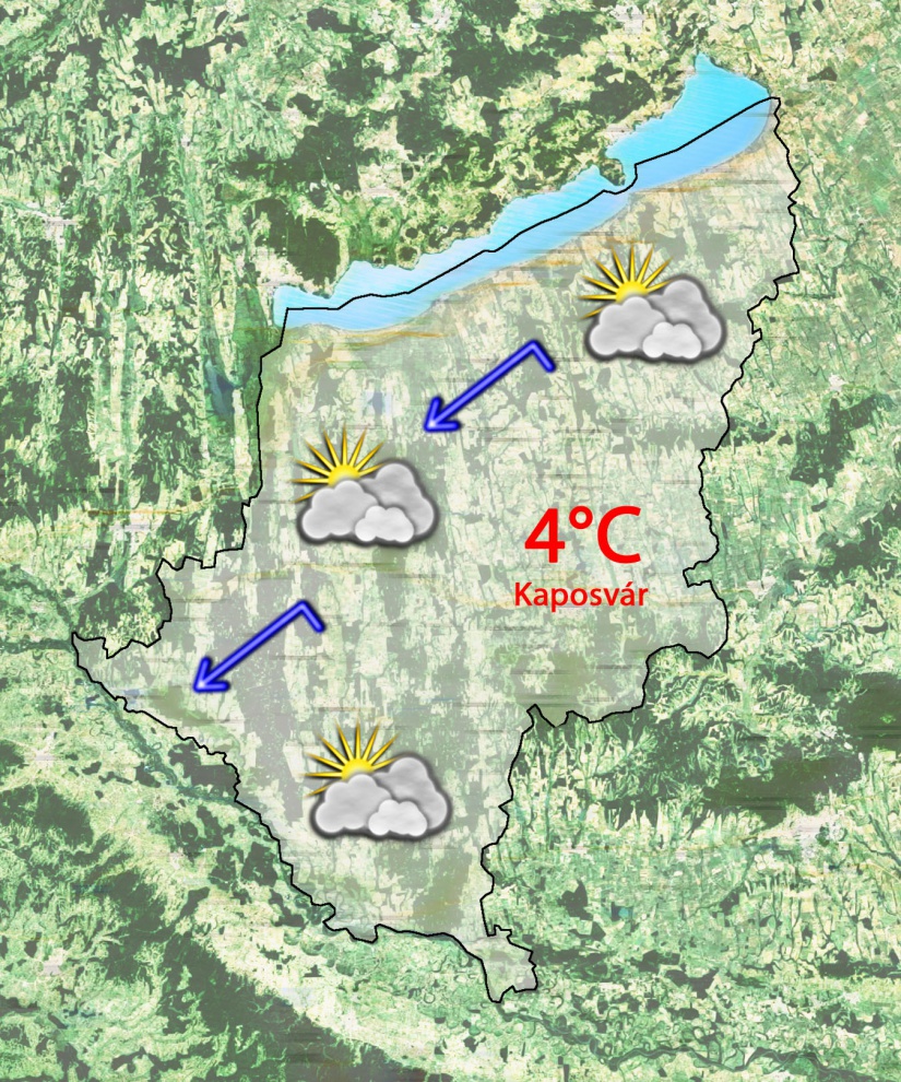 lesz az ég és 5°C-ig melegszik a levegő délutánra a gyenge, de hideg északkeleti szél mellett.