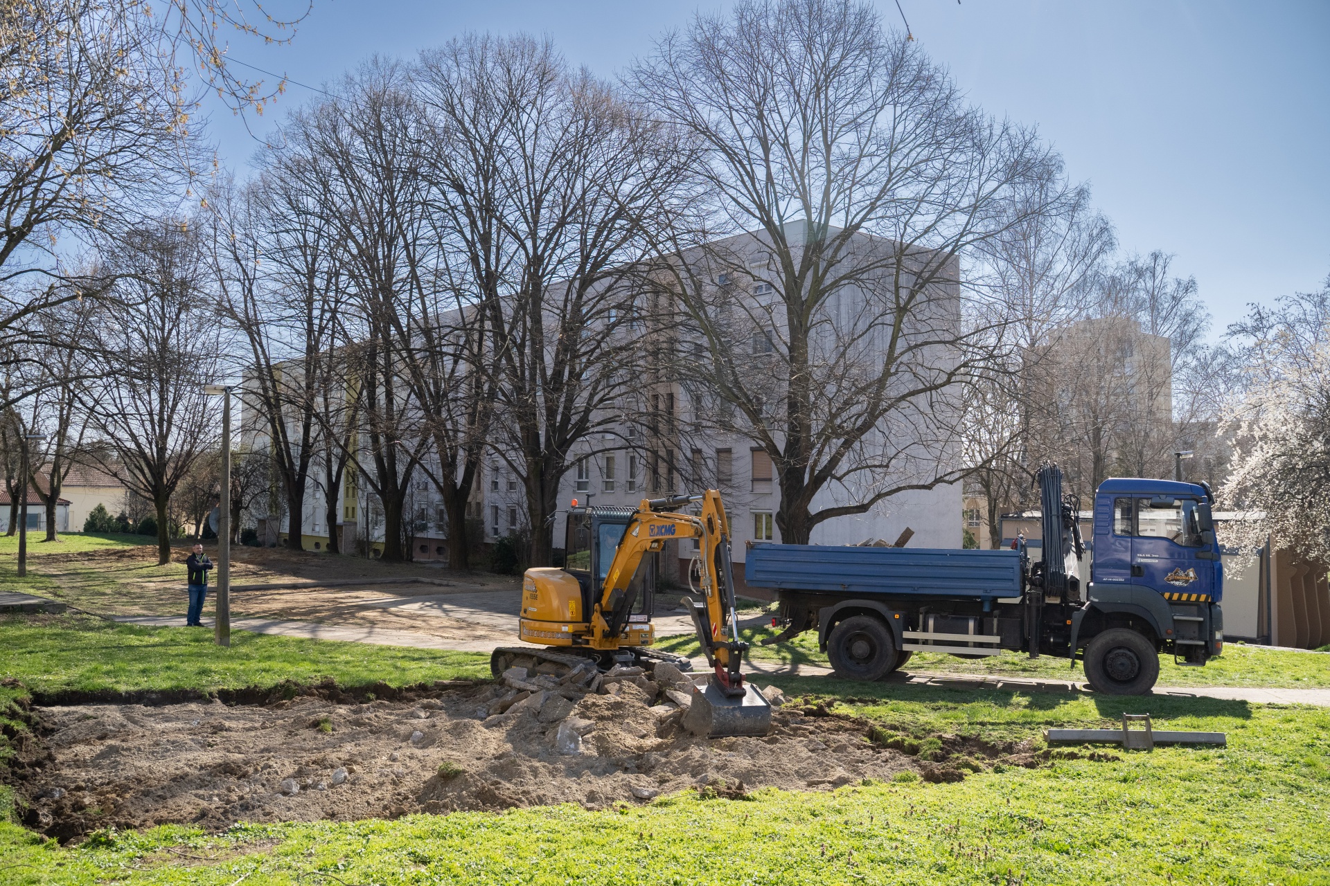 Korábban két játszótér is helyet kapott ebben a lakóövezetben: egy klasszikus, retró vasjátékokat tartalmazó, valamint egy idővel megkopott fajátszótér. A jelenlegi munkálatok során mindkettőt elbontották, és az elavult betonfelületek eltávolításával igyekeznek barátságosabb környezetet kialakítani. A cél, hogy javuljon a mikroklíma, és még több zöld terület álljon rendelkezésre a lakók számára.