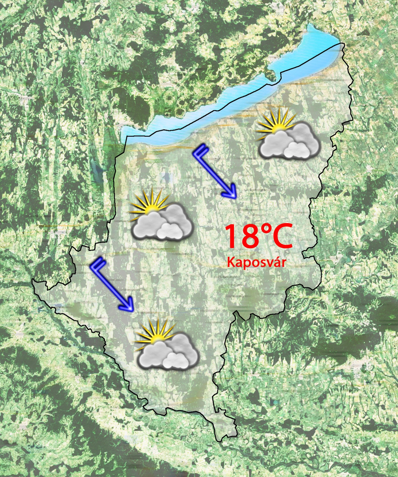 Szerdán napközben közepesen, olykor erősen felhős lesz az ég. Délutánra 14°C-ig melegszik a levegő a gyenge északnyugati szélben.