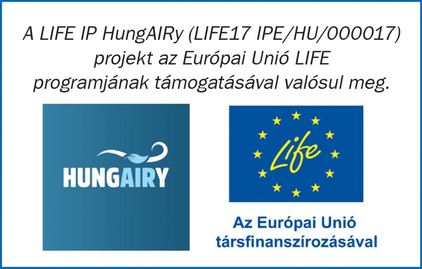 A LIFE IP HungAIRy (LIFE17 IPE/HU/000017) projekt az Európai Unió LIFE programjának támogatásával valósul meg.