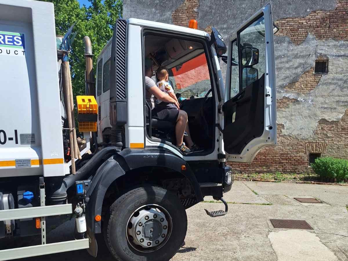 A Kaposvári Hulladékgazdálkodási Nonprofit Kft. gyermeknap alkalmából különleges meglepetéssel készült a város bölcsődéinek. A társaság nagy járműveivel látogatást tett több intézményben, így a Pipitér Bölcsődében is, ahol a kicsik nagy örömmel fedezték fel a járműveket, és sokan kipróbálhatták a vezetőfülkét is.