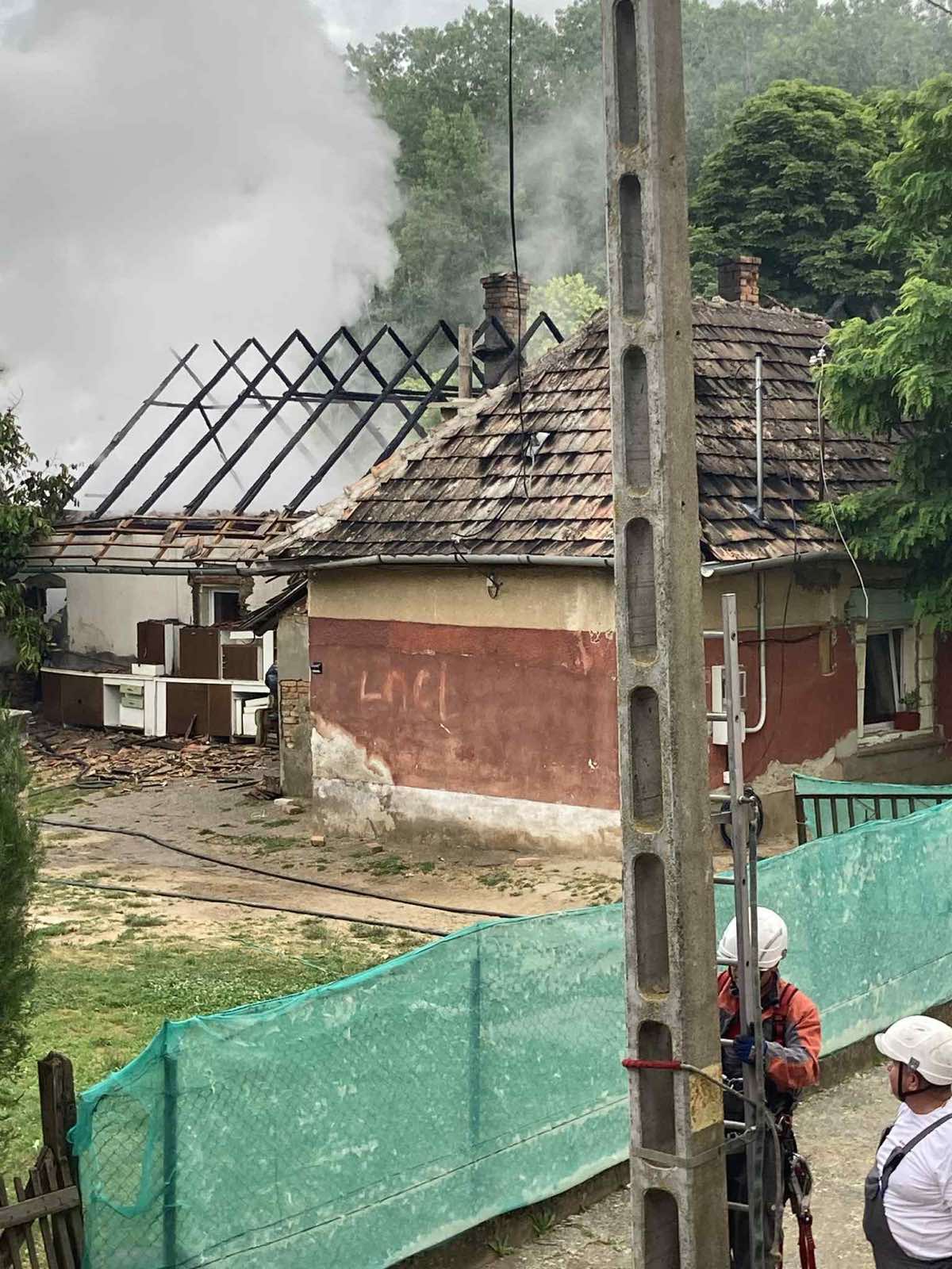 Egy száz négyzetméteres, cserépfedésű lakóház tetőszerkezete kapott lángra szerda reggel Bábonymegyeren, a Béke utcában.