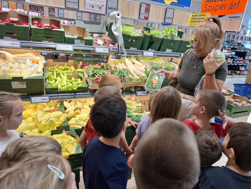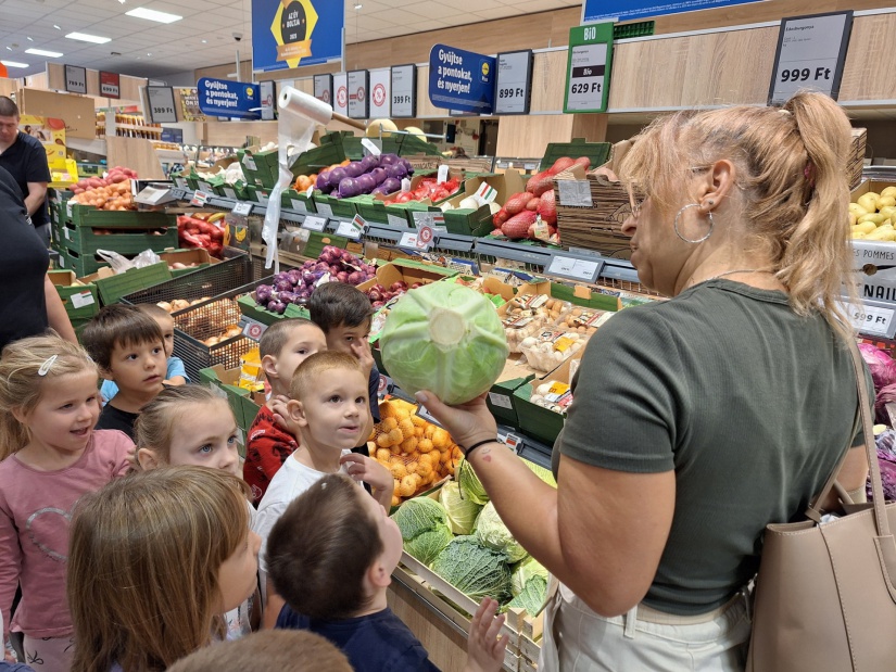 A gyerekek nagy izgalommal fedezték fel a zöldség-gyümölcs részleget, rácsodálkozva a sokféle forma és szín kavalkádjára. Külön élményt jelentett számukra, hogy nemcsak a jól ismert hazai terményekkel találkozhattak, hanem egzotikus különlegességekkel is, mint például a kaktuszfüge, az avokádó vagy az ananász.