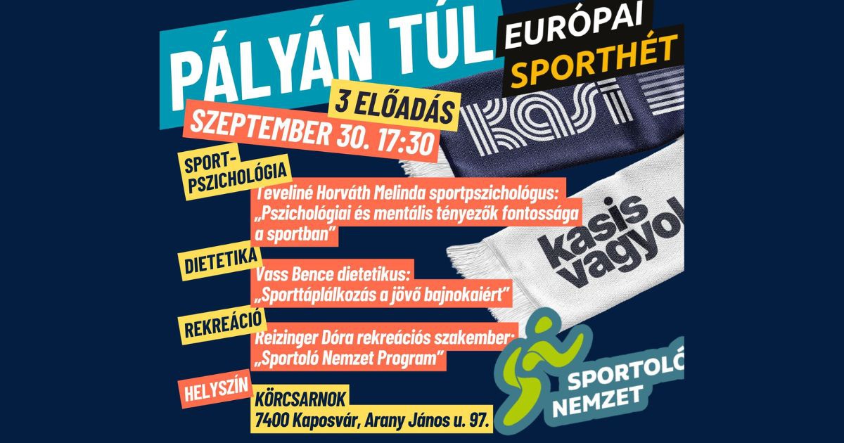 A Kaposvári Sportközpont és Sportiskola is csatlakozott az Európai Sporthéthez. Ennek keretein belül ezen a héten kedden a Városi Sportcsarnokban három előadást tartanak majd a KASI szakemberei.