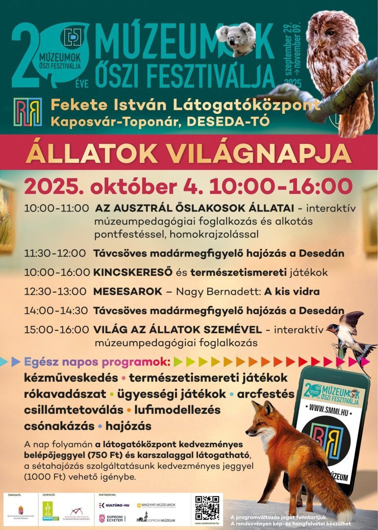 Az Állatok Világnapja alkalmából különleges programokkal készül a Fekete István Látogatóközpont a Desedánál.
