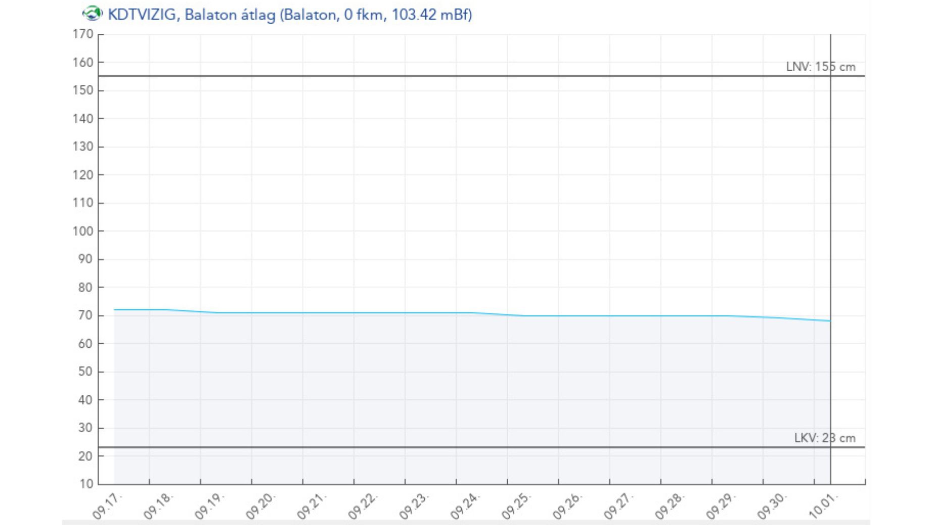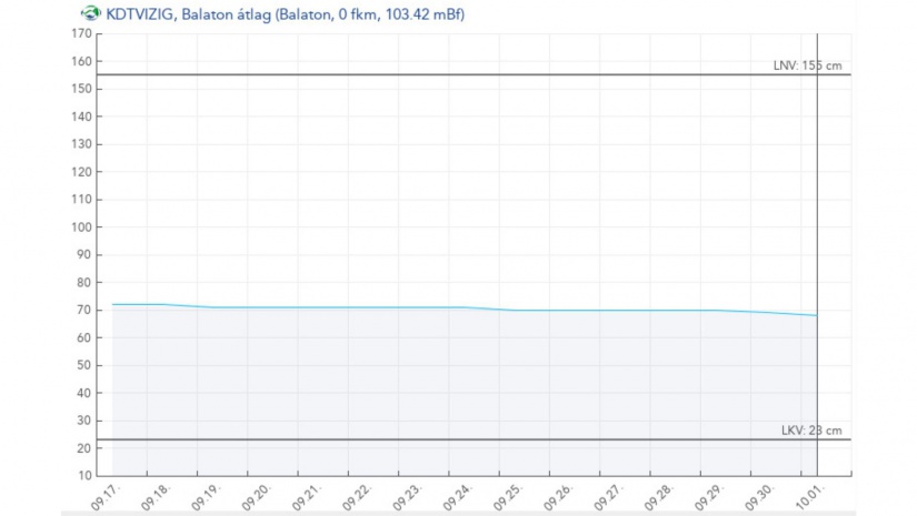 A Balaton átlagos vízállása az elmúlt két napban újabb két centivel csökkent, jelenleg 68 centiméter – a siófoki vízmércéhez viszonyítva, ami nem átlagmélységet jelent.