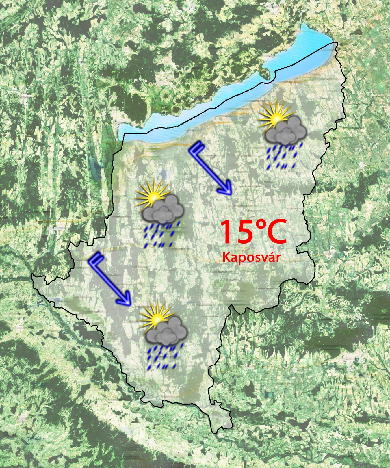 A hét második felében változóan felhős idő várható kevés csapadékkal. Reggelente 5-10°C közé süllyed a hőmérséklet, míg napközben 17-20°C között lesz a maximum. Hétvégére kicsit szelesebb idő várható.