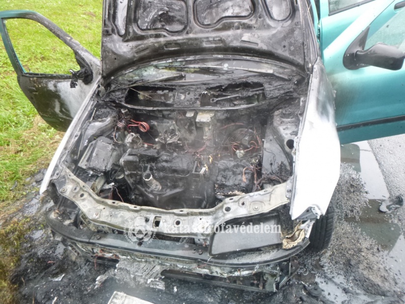 Az autó motortere és műszerfala égett.