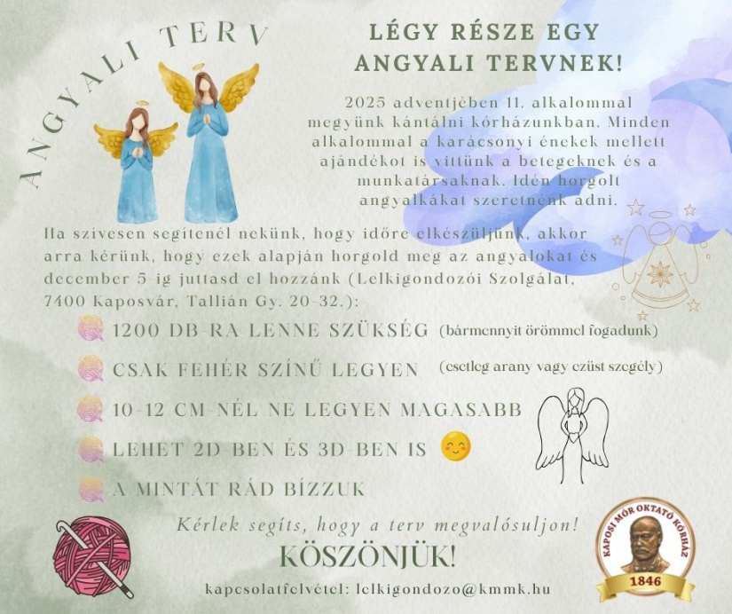 Korainak tűnhet, de 1200 angyalka meghorgolásához sok idő kell. Érkeznek postán, személyesen az alkotások, de egy horgolós program keretében is készülnek. Aki szívesen csatlakozna az „Angyali terv” programukhoz, szeretettel várják.