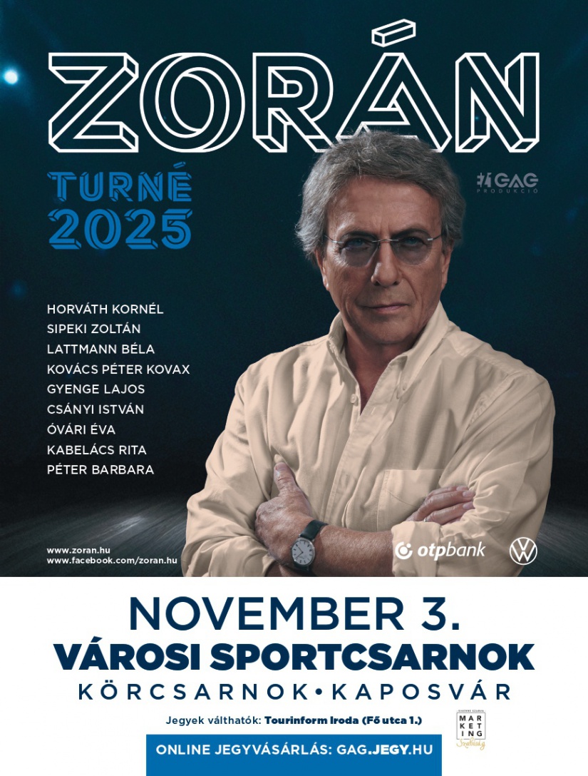Zorán koncertjéhez tehát más nem kell, csak a zene. Aki akár egyszer is látta őt színpadon, pontosan tudja, hogy magával ragadó zenei élményben lesz része. A Kossuth- és Liszt-díjas előadóművész Kaposváron, a városi sportcsarnokban november 3-án 19 órától ad koncertet.