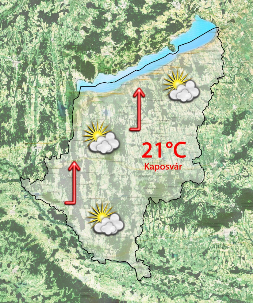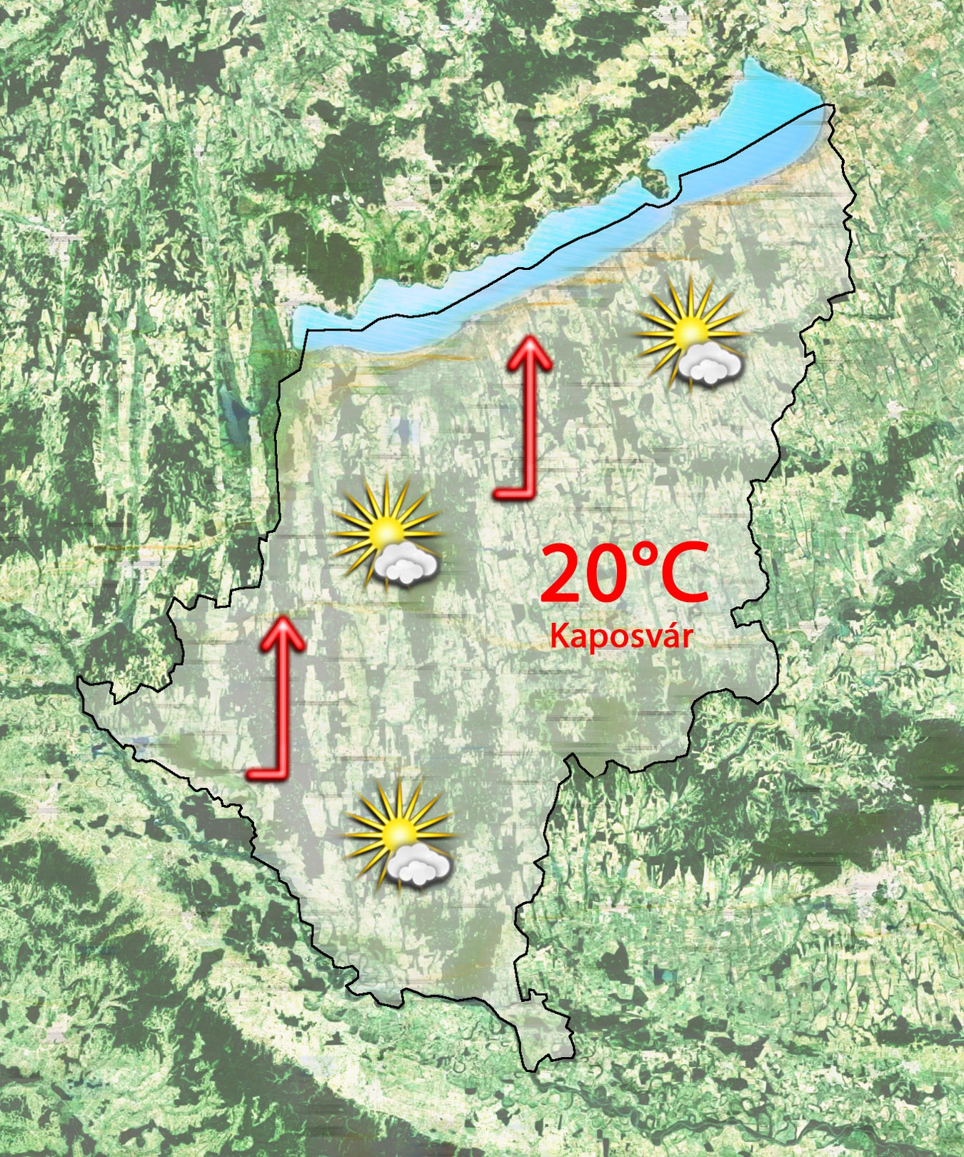 Péntek napközben eleinte erősen felhős lesz az ég, majgy egyre inkább csökken a felhőzet. Estére teljesen kiderül majd. Délután 20°C-ig kúszik fel csak a hőmérő higanyszála. Gyenge déli szél fúj majd.