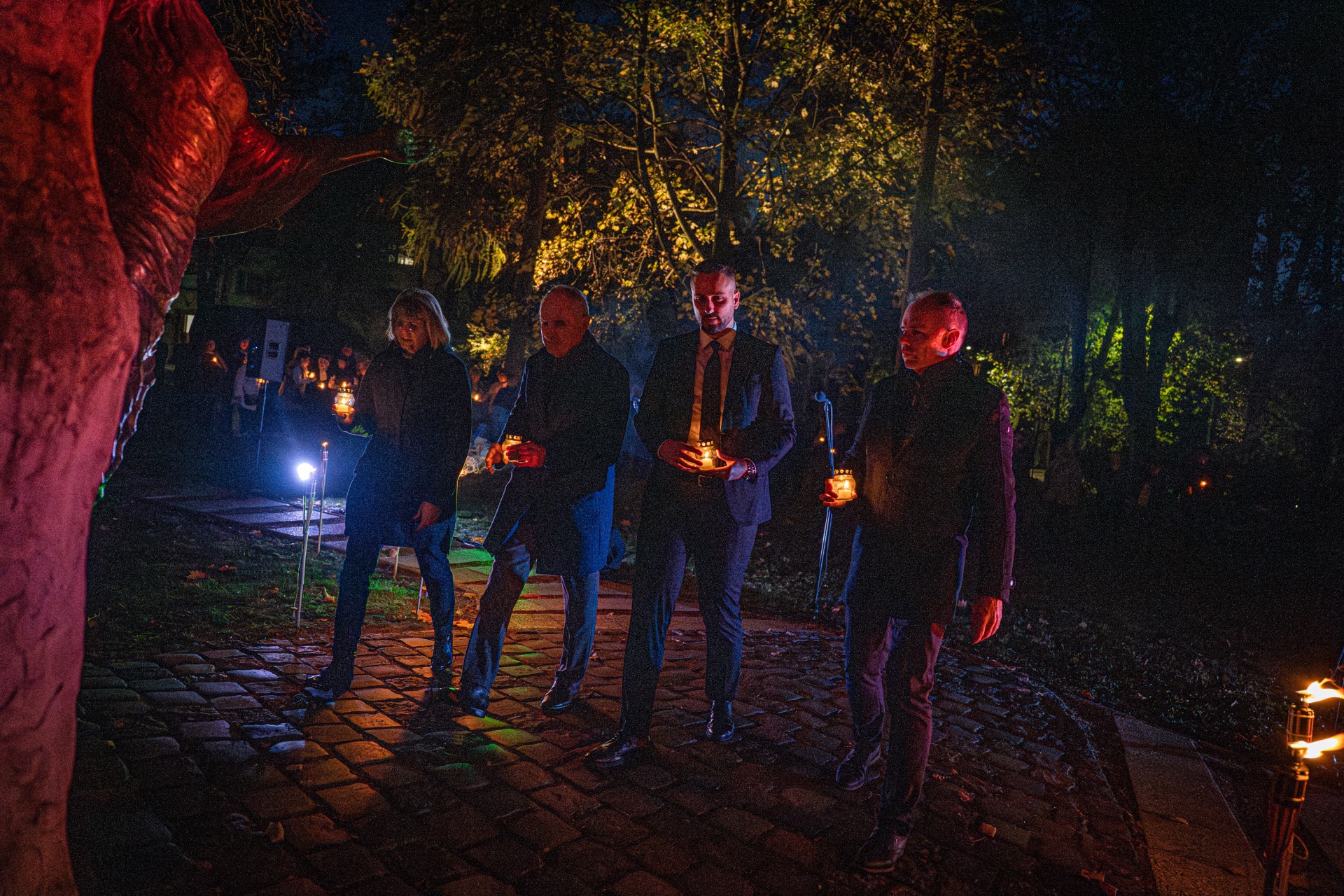 – A mai napon ezek a lángok nemcsak a múltat idézik, hanem a magyarok örök hitét, bátorságát és méltóságát is jelképezik – mondta emlékbeszédében Pintér Rómeó, Kaposvár alpolgármestere. – A ma este meggyújtott mécseseink fénye lehetőséget ad arra, hogy világosan és tisztán láthassuk a magyar történelem egyik legsötétebb hajnalának eseményeit.