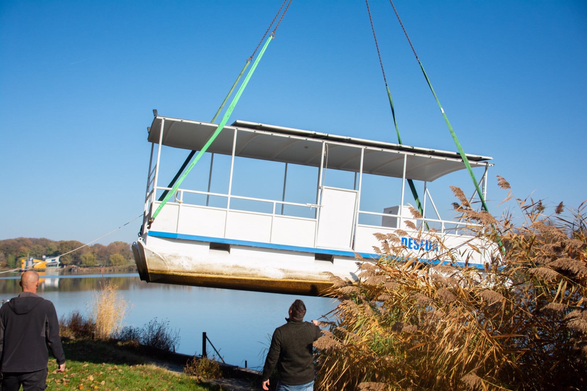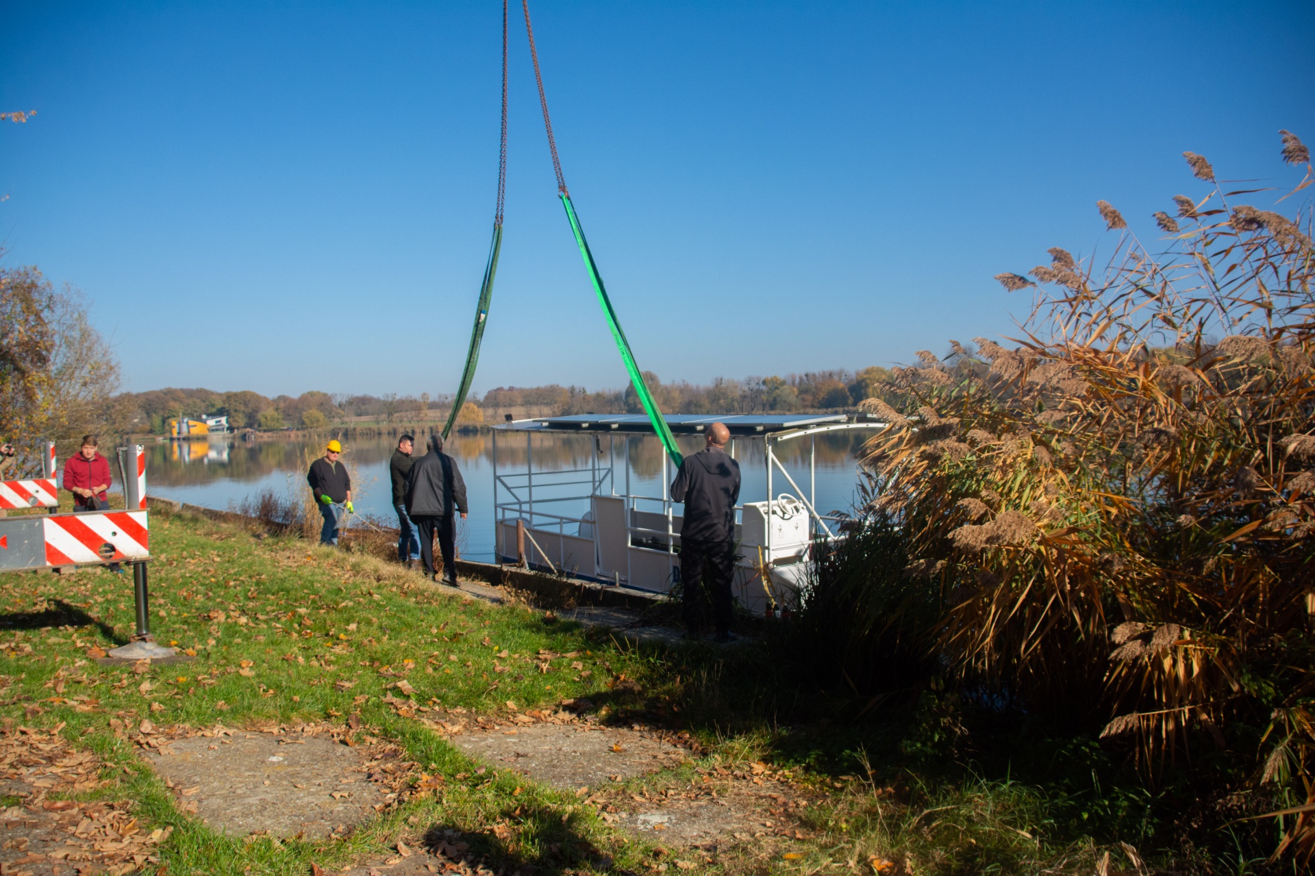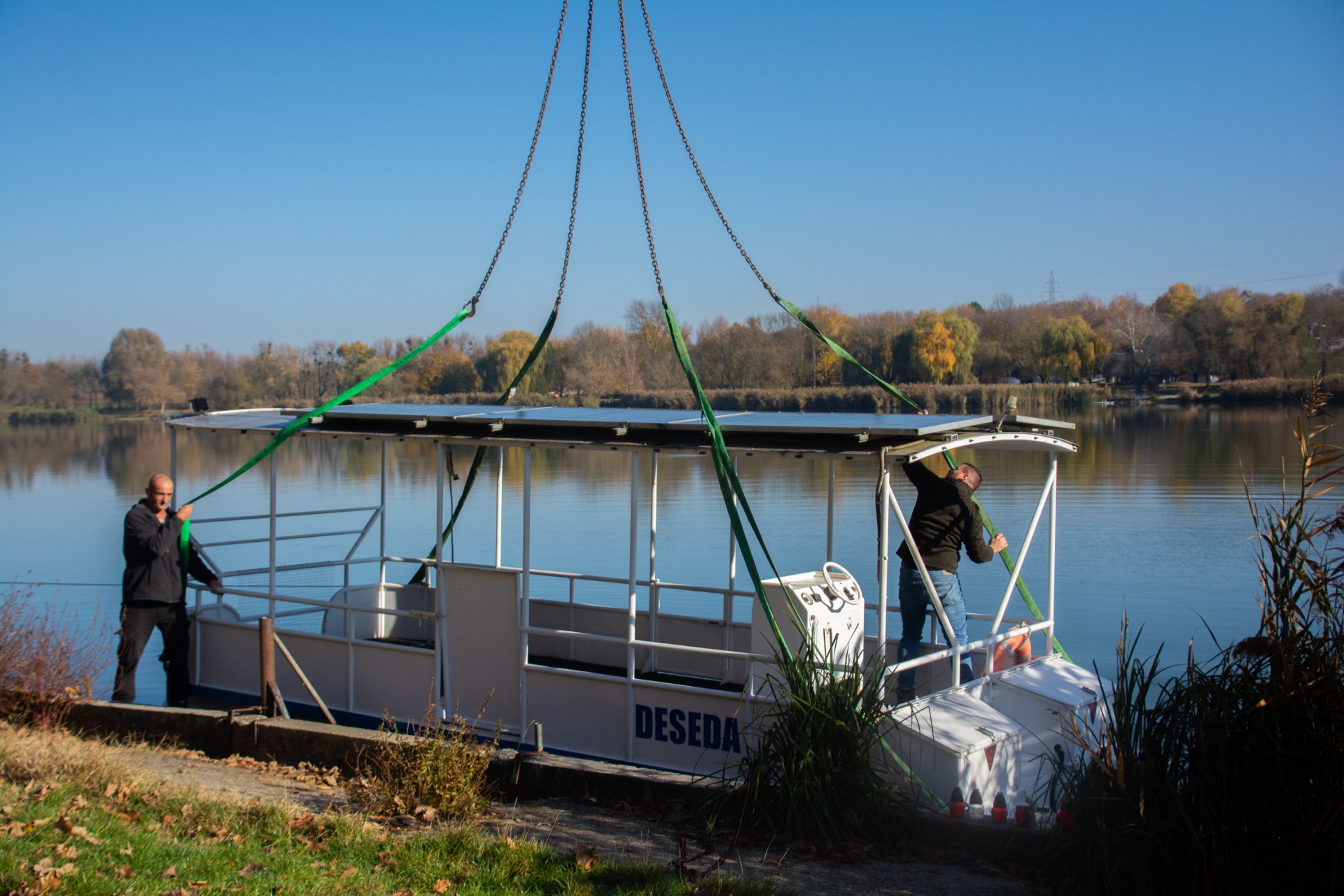 A tó jelképének számító kishajót április elsején helyezték vízre, csütörtökön pedig kiemelték: a következő hónapokban karbantartási munkák várnak rá, hogy tavasszal ismét vízre kerülhessen.