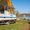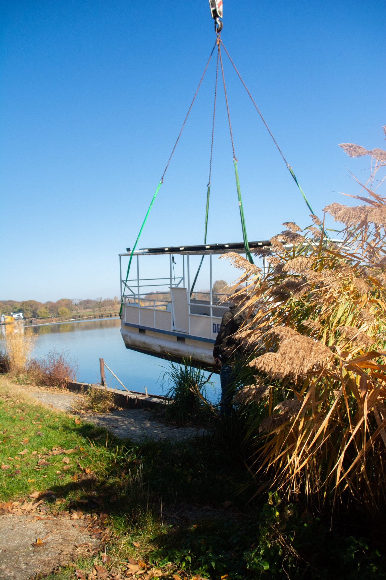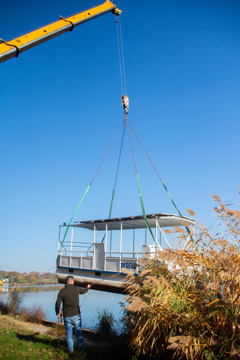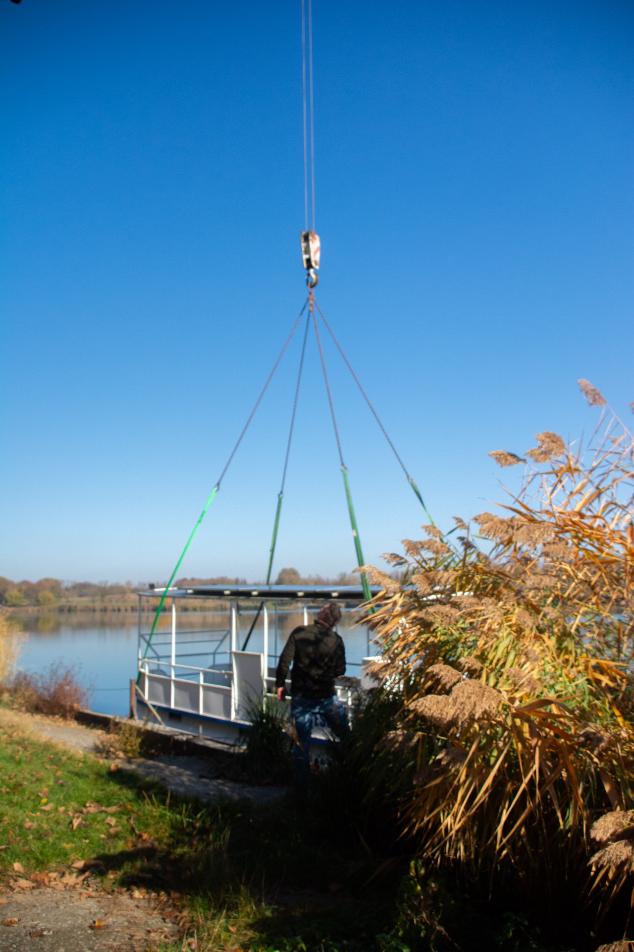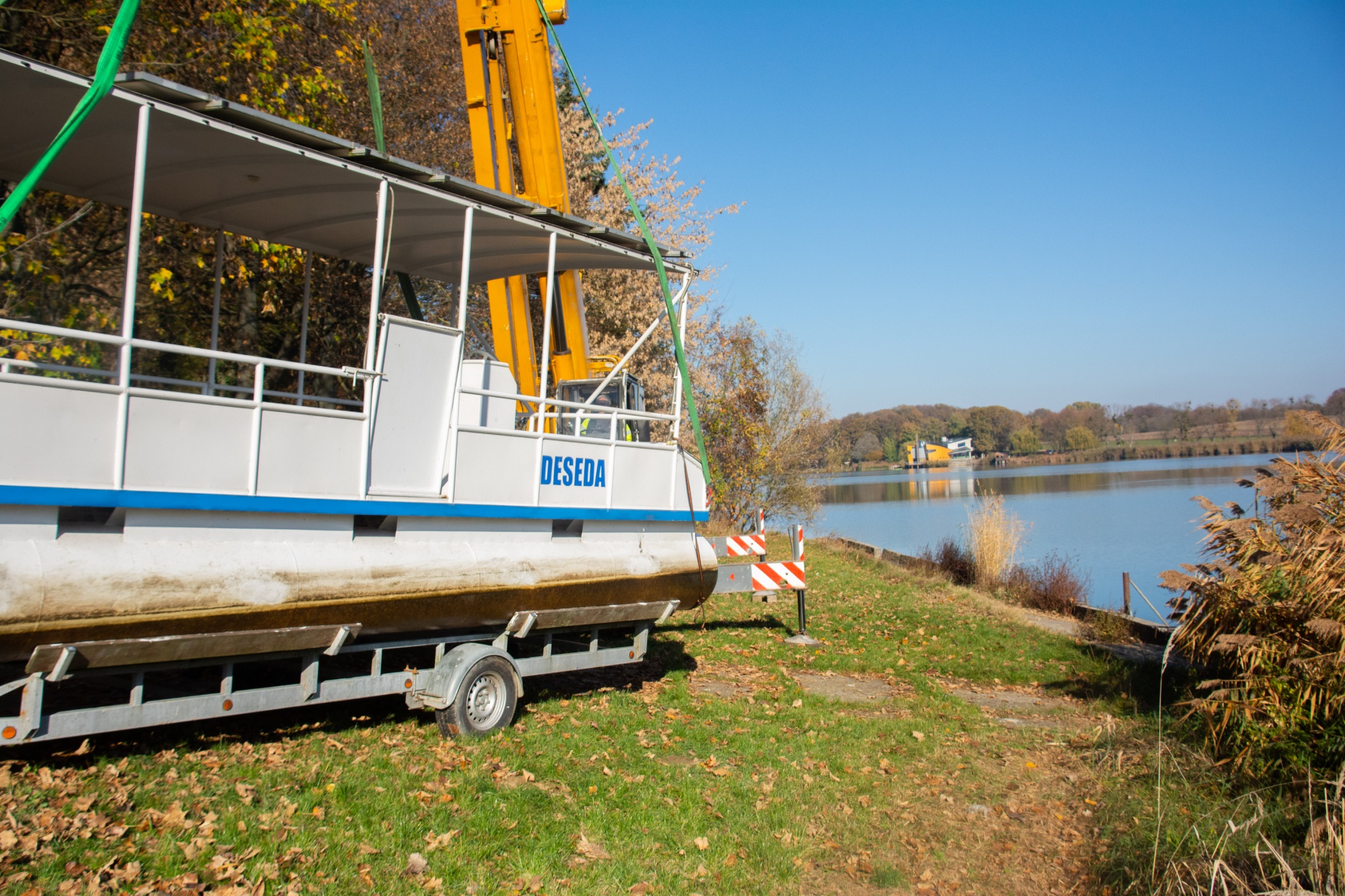 A tó jelképének számító kishajót április elsején helyezték vízre, csütörtökön pedig kiemelték: a következő hónapokban karbantartási munkák várnak rá, hogy tavasszal ismét vízre kerülhessen.