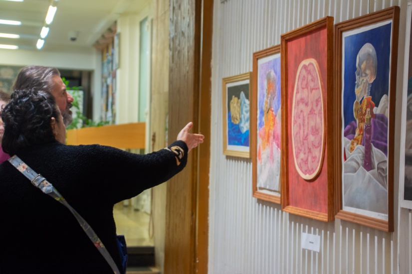 Elmondta: többféle technikával is alkot: pasztellal, akrillal, olajjal, több képe pedig plasztikus elemekkel egészül ki.