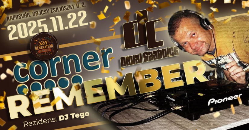 A kaposvári éjszakai élet egyik ikonikus sorozata tér vissza. Remek hangulat, jó zenék és kellemes társaság – sokak kedvencei, az egykori Corner bulik újra felpezsdítik a várost. A korábbi Corner Remember esemény nagy sikert aratott, így a szervező, Szabó Márk számára nem volt kérdés, hogy folytatás következzen.